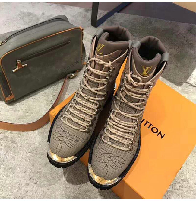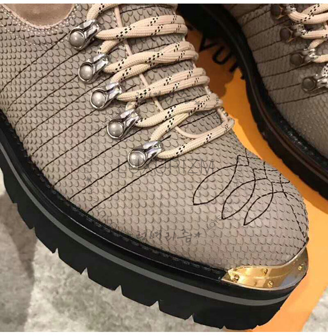 메탈릭 실버 파이톤 가죽을 사용한 LV 아웃랜드 앵클 부츠는 루이비통 2018-19 가을-겨울