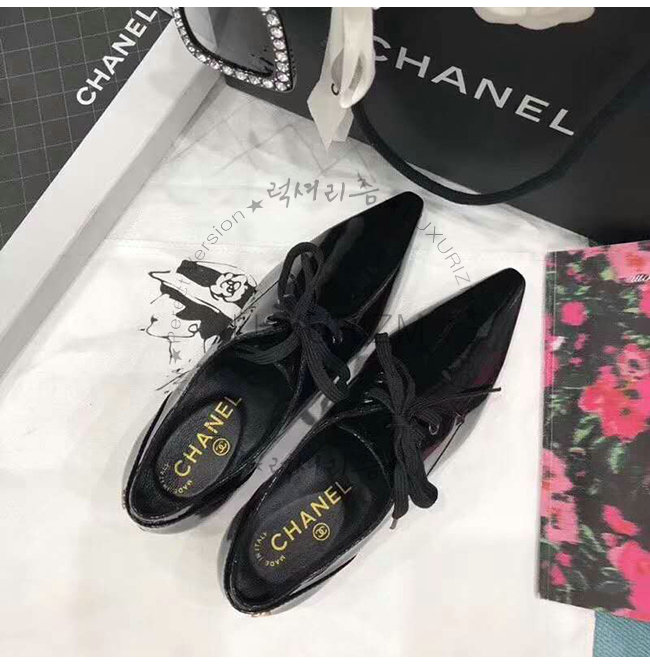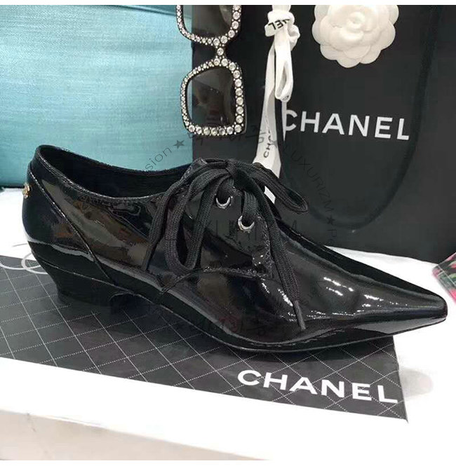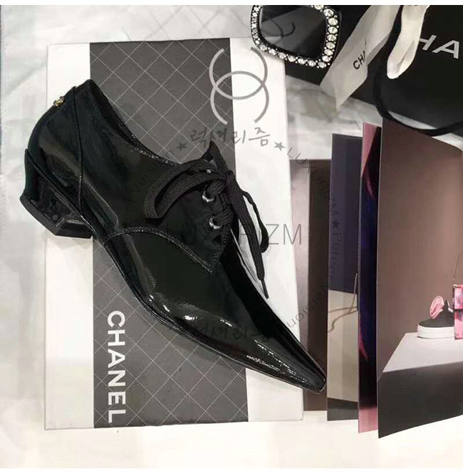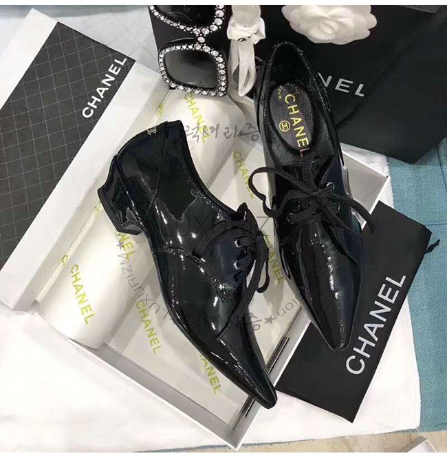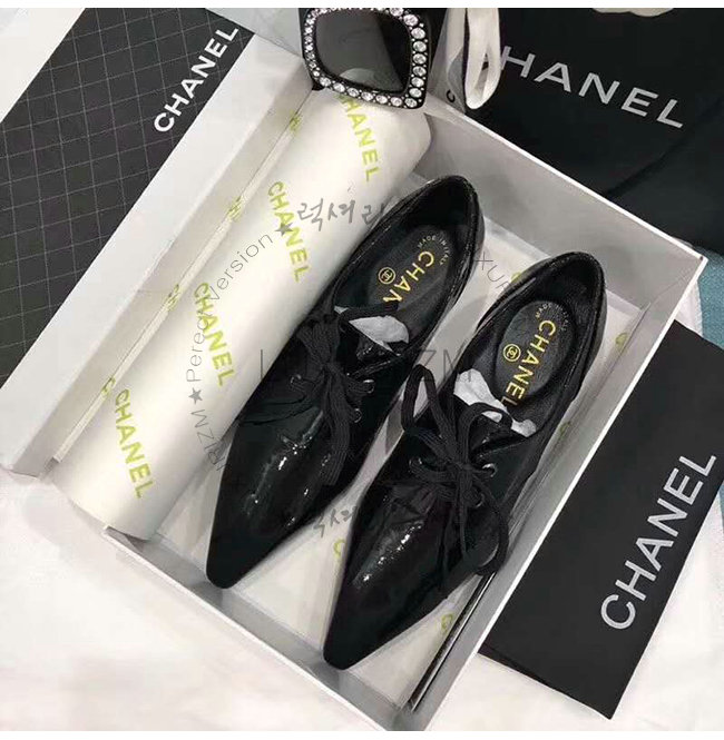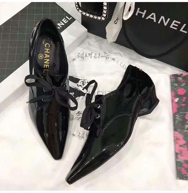 CHANEL-G34275 샤넬 블랙 페이턴트 카프스킨 레이스업