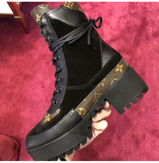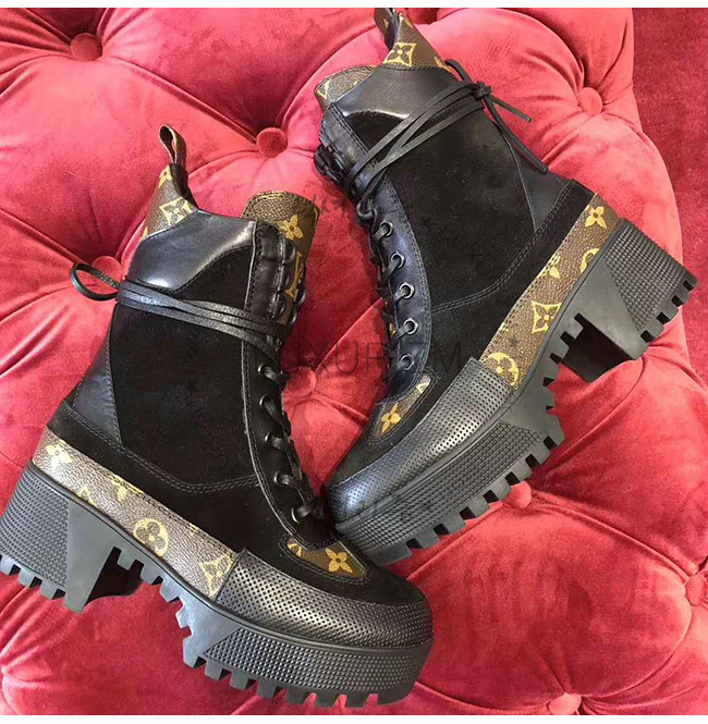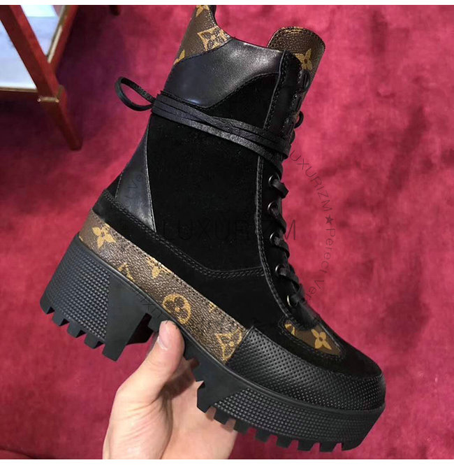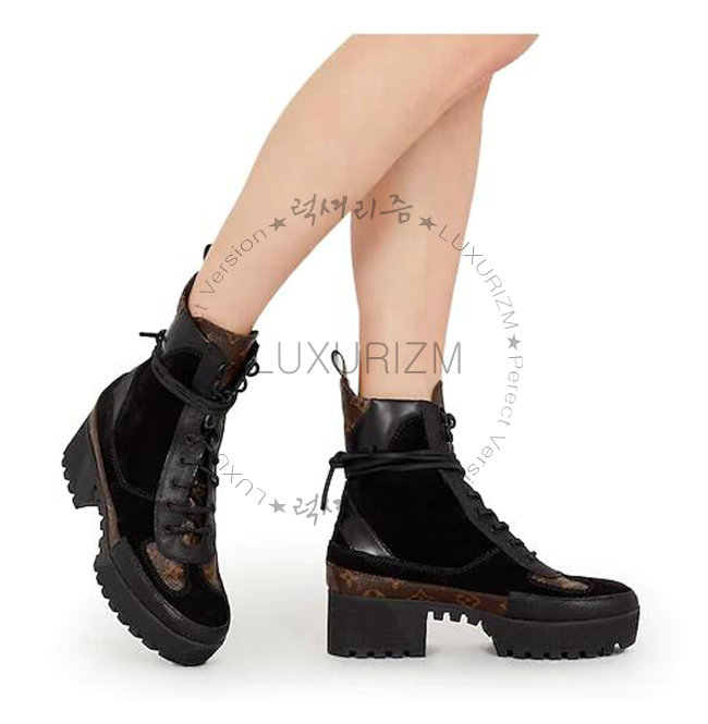 [스페셜오더]LOUIS VUITTON-1A3RQ1 루이비통 스웨이드 송아지 가죽 모노그램 악어가죽 디테일 로리엇 플랫폼 데저트 부츠 가격 : 320,000원