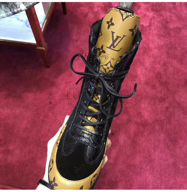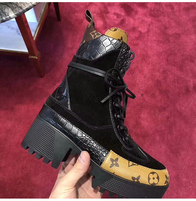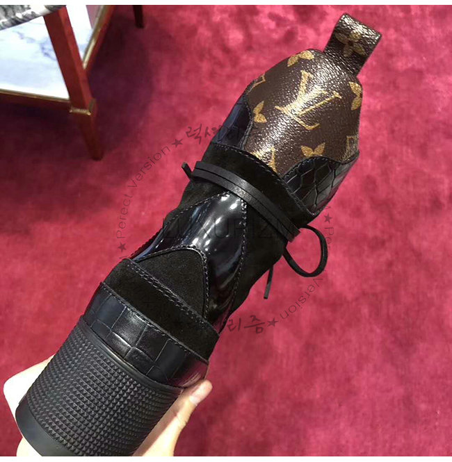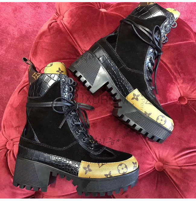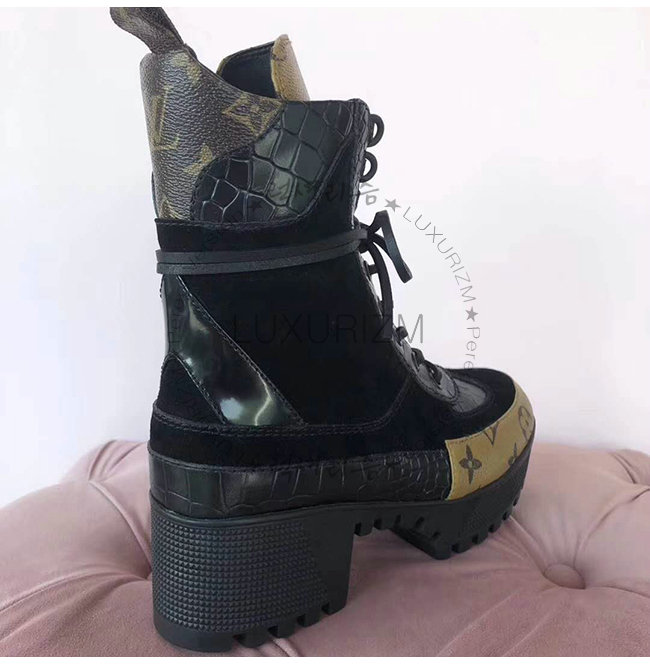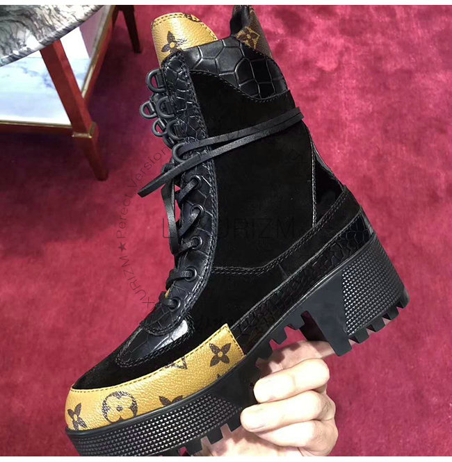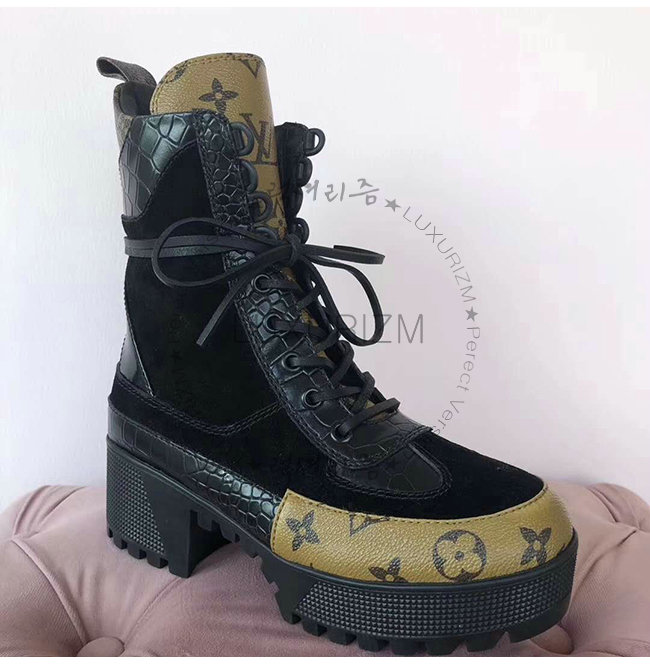 [스페셜오더]LOUIS VUITTON-1A2ZCB 루이비통 스웨이드 송아지 가죽 모노그램 리버스 악어가죽 디테일 로리엇 플랫폼 데저트 부츠