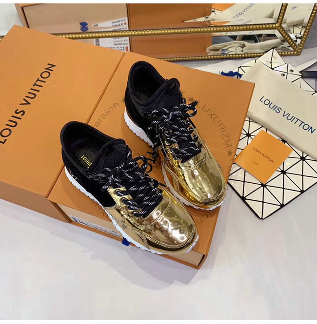 LOUIS VUITTON-1A4BD5 루이비통 골드 메탈릭 장식 런 어웨이 스니커즈
