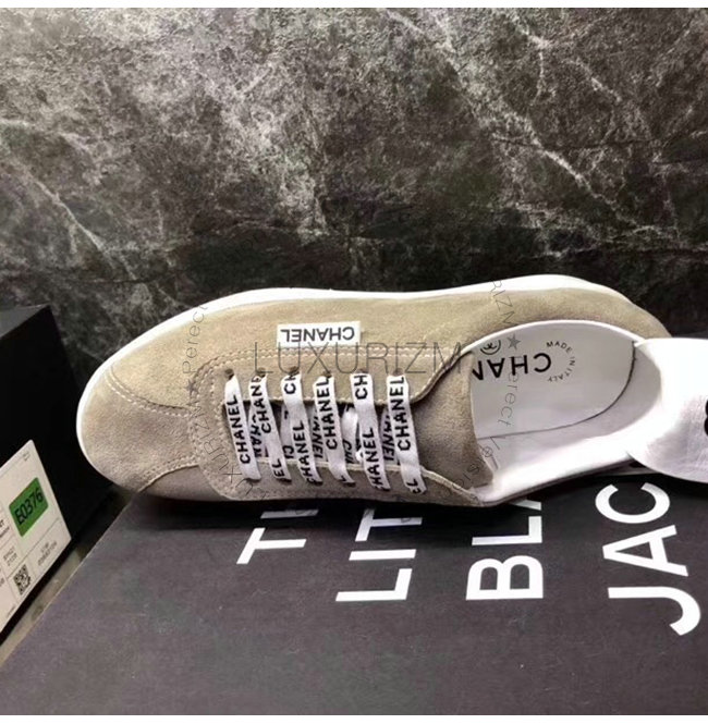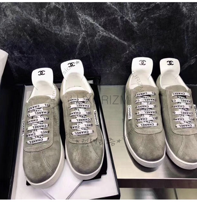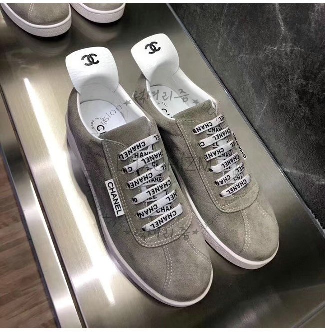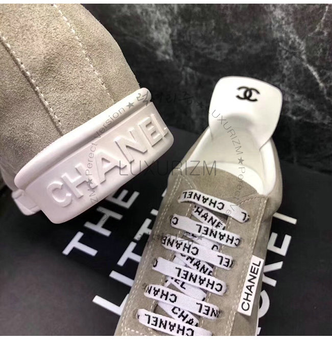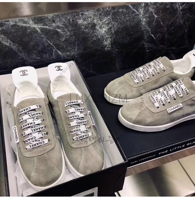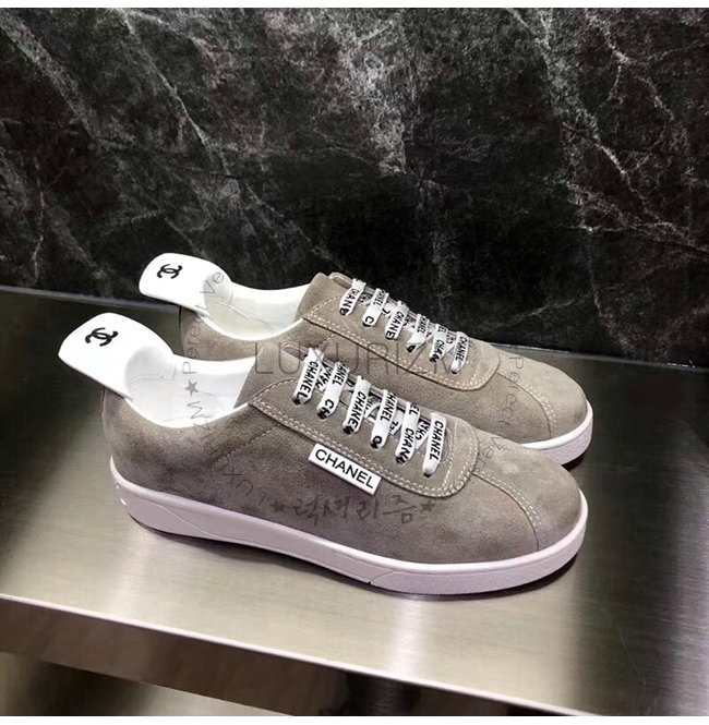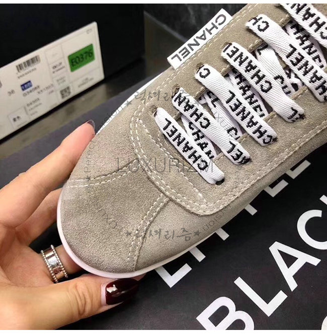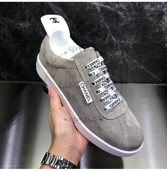 CHANEL-G34085 샤넬 그레이 스웨이드 카프스킨 스니커즈