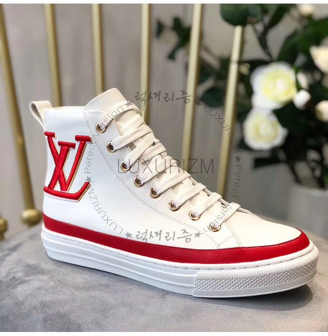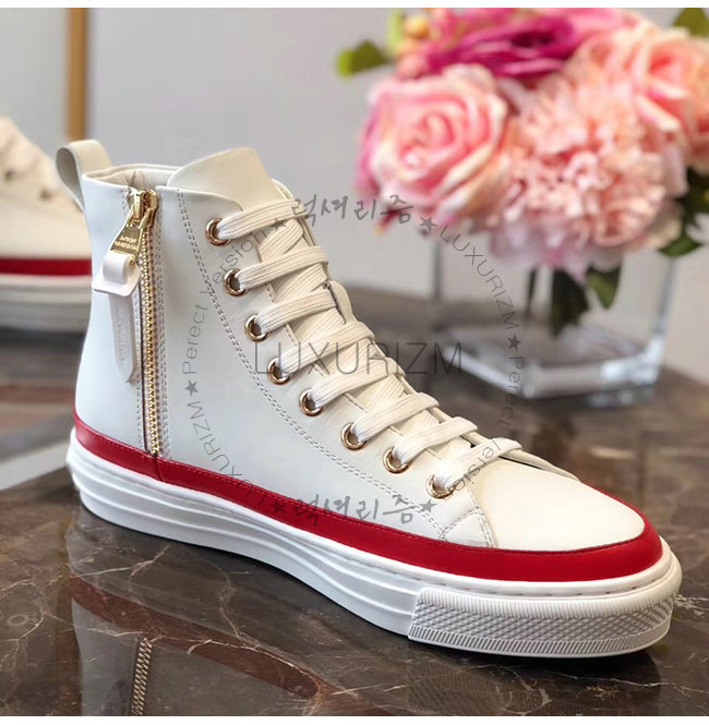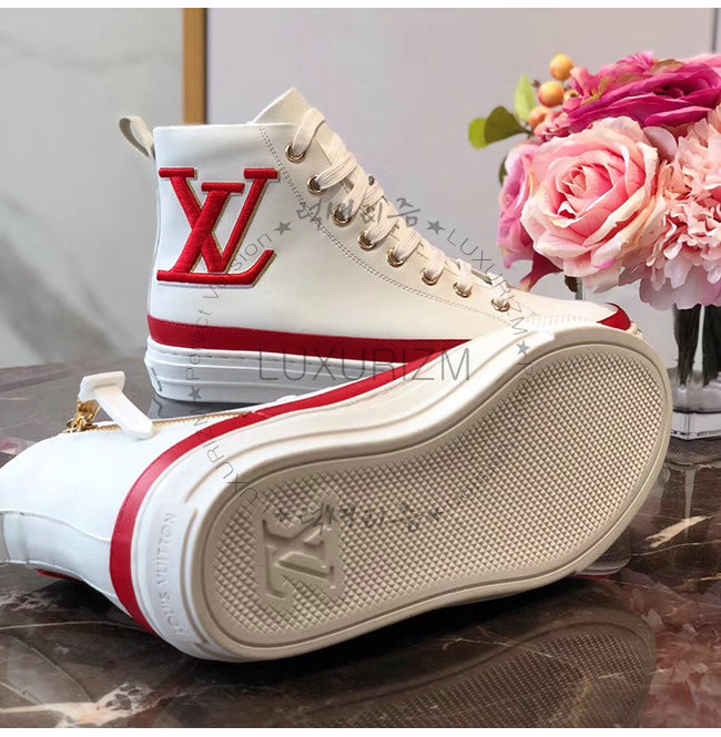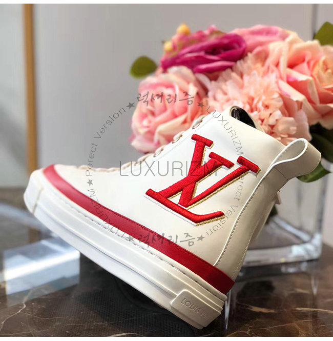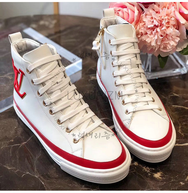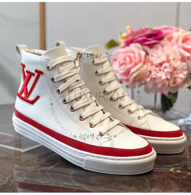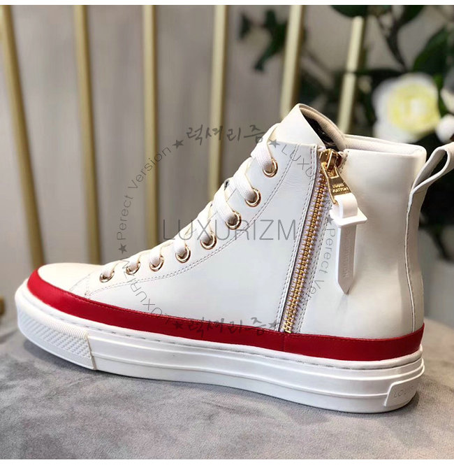LOUIS VUITTON-1A4X3X 루이비통 화이트 송아지 가죽 레드 디테일 스텔라 스니커 부츠