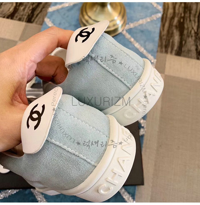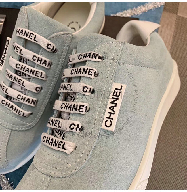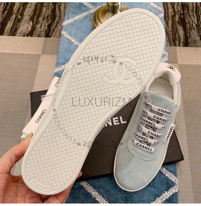 CHANEL-G34085 샤넬 스카이 블루 스웨이드 카프스킨 스니커즈