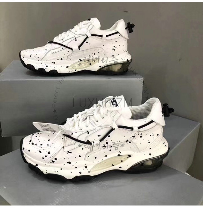 VALENTINO-QY0S0B20 발렌티노 화이트 송아지 가죽 핸드 스프레이 장식 바운스 로우탑 스니커즈(남여공용)