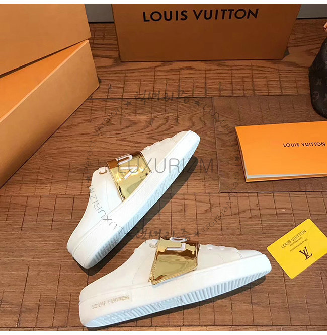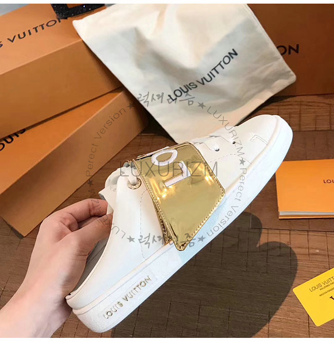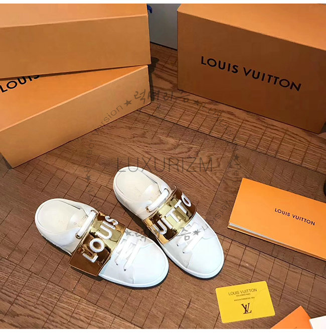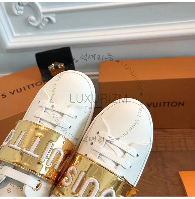 LOUIS VUITTON-1A4WUU 루이비통 화이트 송아지 가죽 골드 벨크로 스트랩 프런트로우 스니커즈