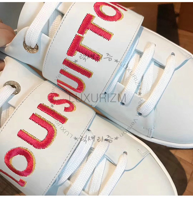 LOUIS VUITTON-1A4G2Z 루이비통 화이트 송아지 가죽 핑크 화이트 모노그램 벨크로 스트랩 프런트로우 스니커즈