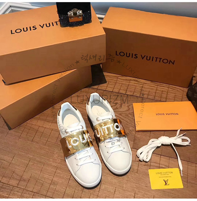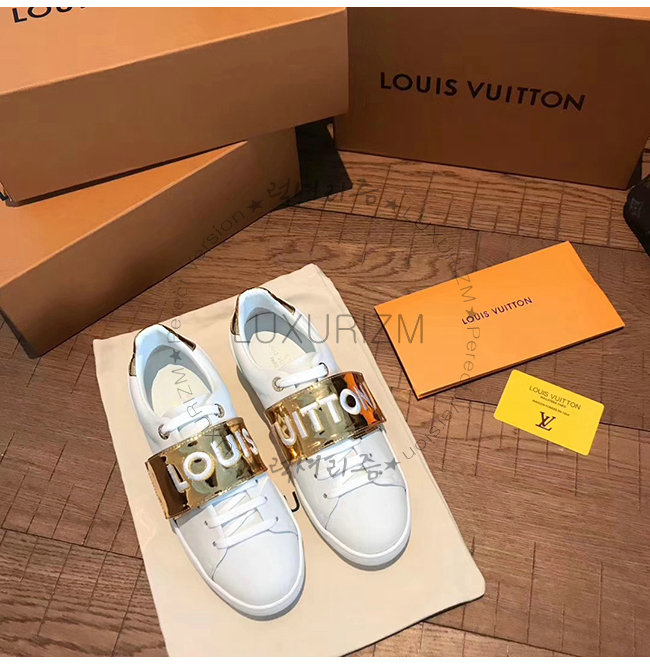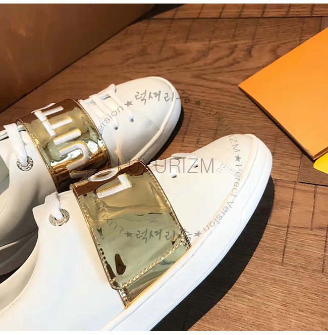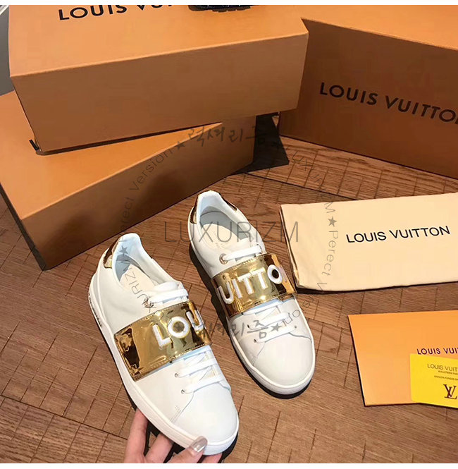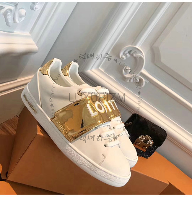 LOUIS VUITTON-1A4VRQ 루이비통 화이트 송아지 가죽 골드 벨크로 스트랩 프런트로우 스니커즈