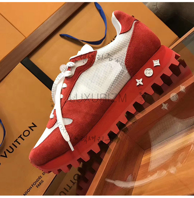 LOUIS VUITTON-1A525Y 루이비통 레드 스웨이드 송아지 가죽 LV 러너 스니커즈