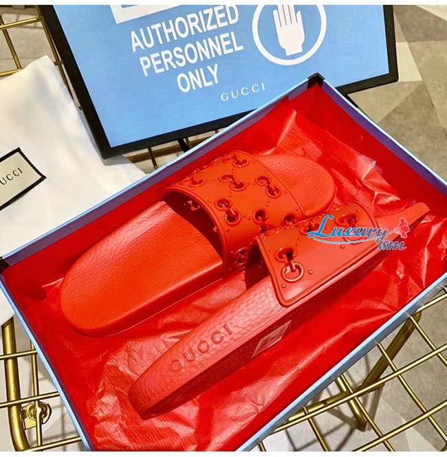 GUCCI-575957 6448 구찌 레드 러버 GG 슬라이드 샌들 남여공용