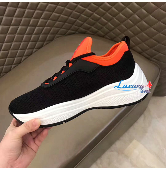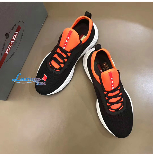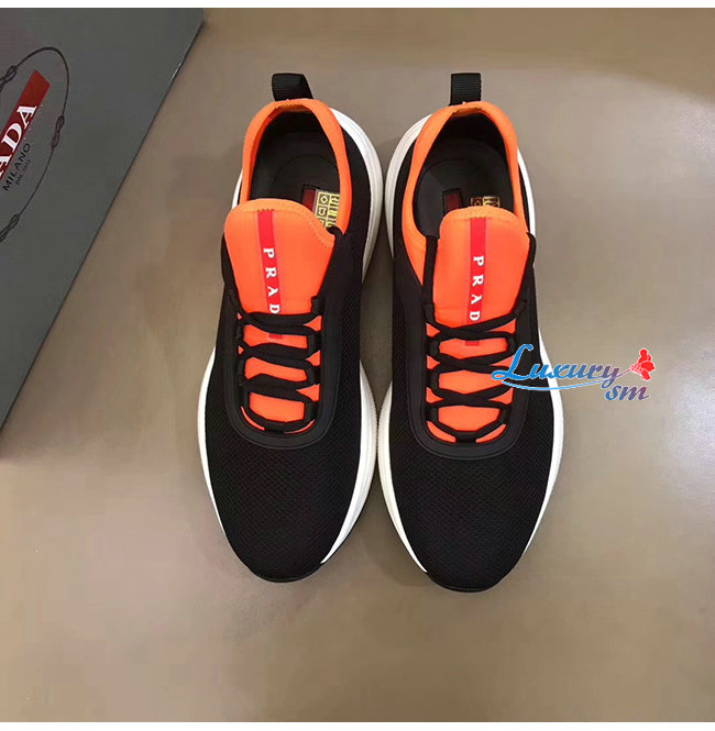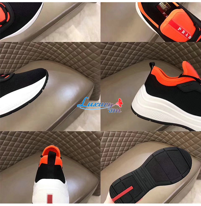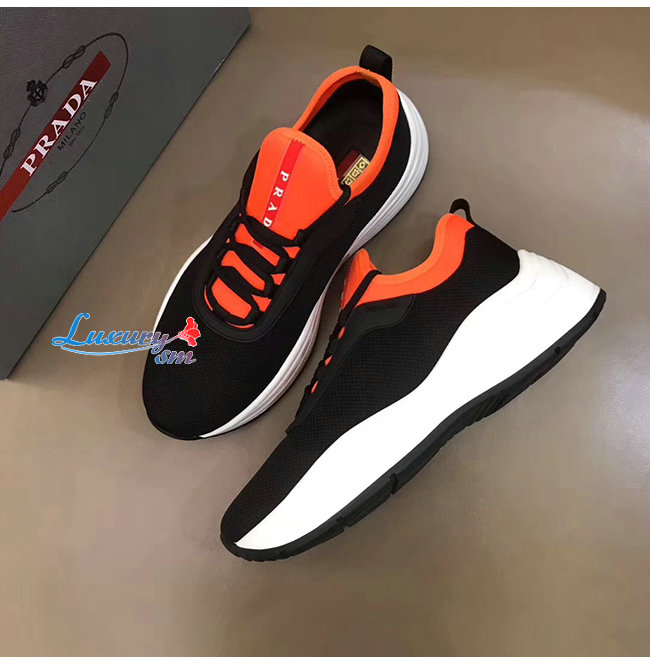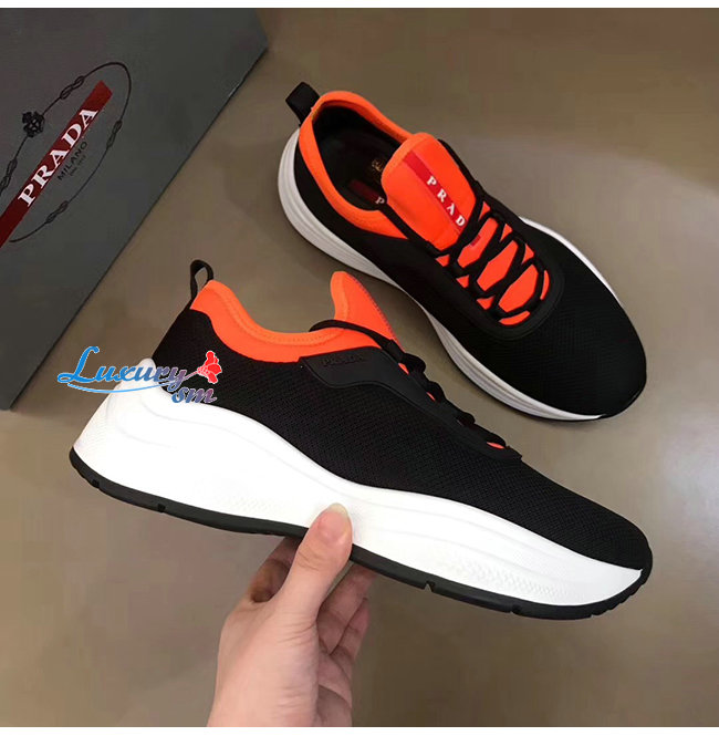 PRADA-4E3406 프라다 블랙 오렌지 메시 네오프렌 스니커즈