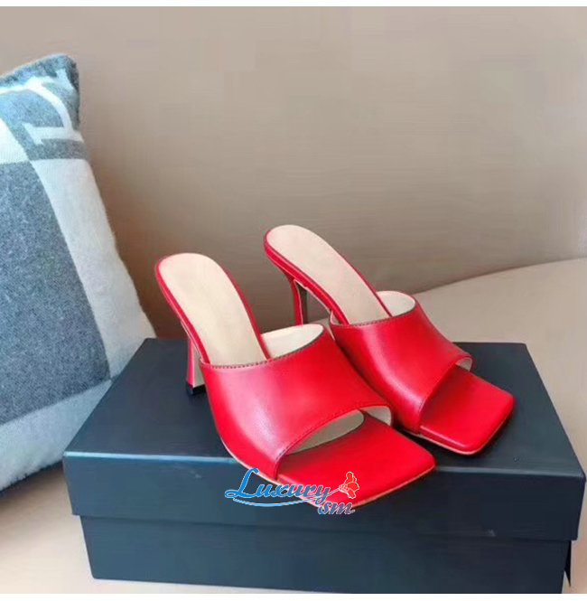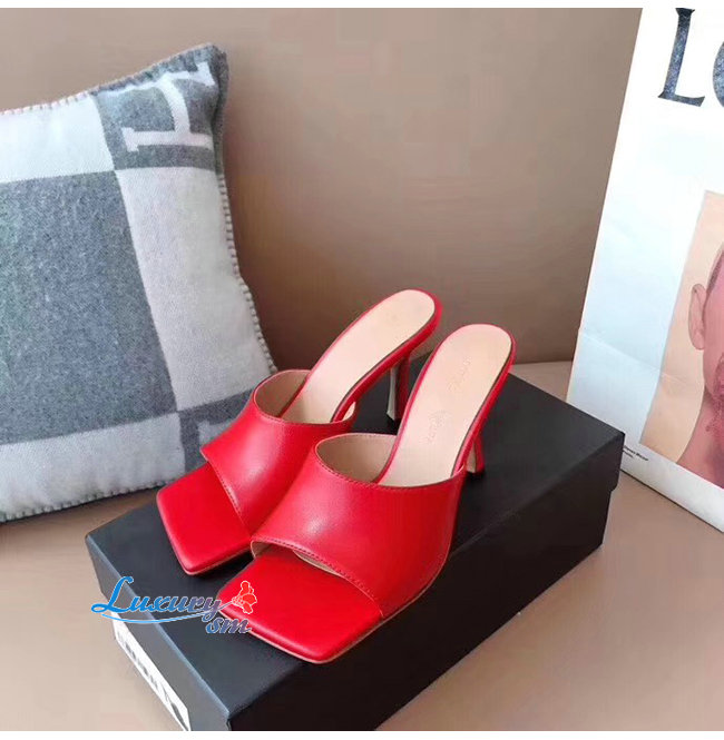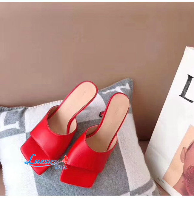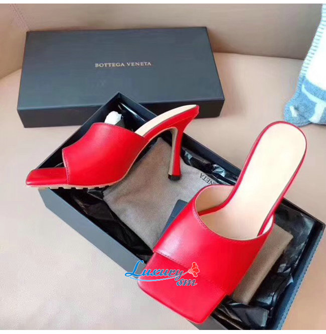 BOTTEGA VENETA-578319 보테가 베네타 레드 카프스킨 스트레치 샌들