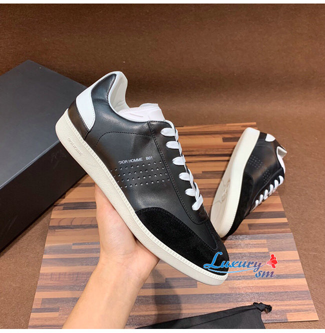 Dior Homme B01 시그니처가 장식된 블랙 스웨이드 송아지