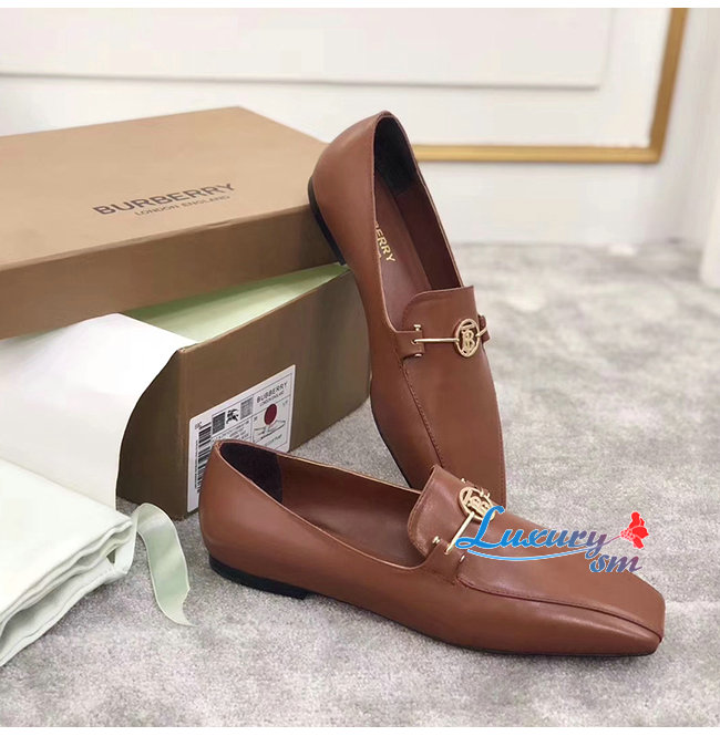 BURBERRY-80155711 버버리 탠 송아지 가죽 모노그램 모티프 로퍼