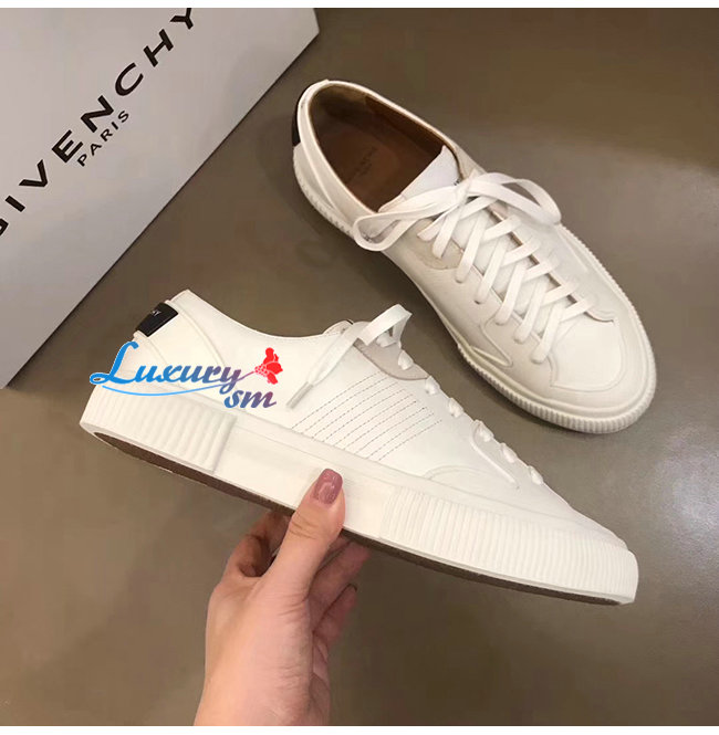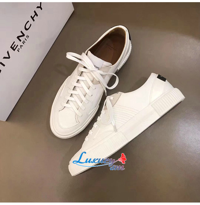 GIVENCHY-BH001TH0 지방시 화이트 송아지 가죽 로우탑 스니커즈