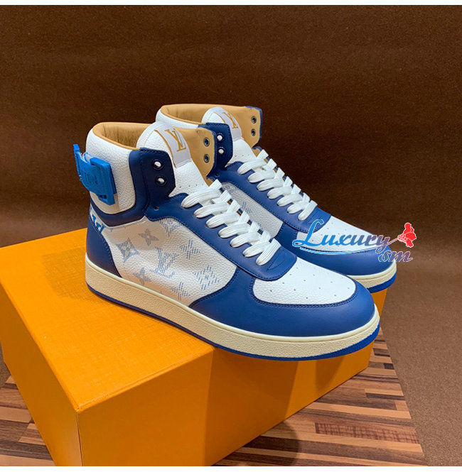 [스페셜오더]LOUIS VUITTON-1A5ER0 루이비통 화이트/블루 모노그램 그레인 카프스킨 하이탑 리볼리 스니커즈
