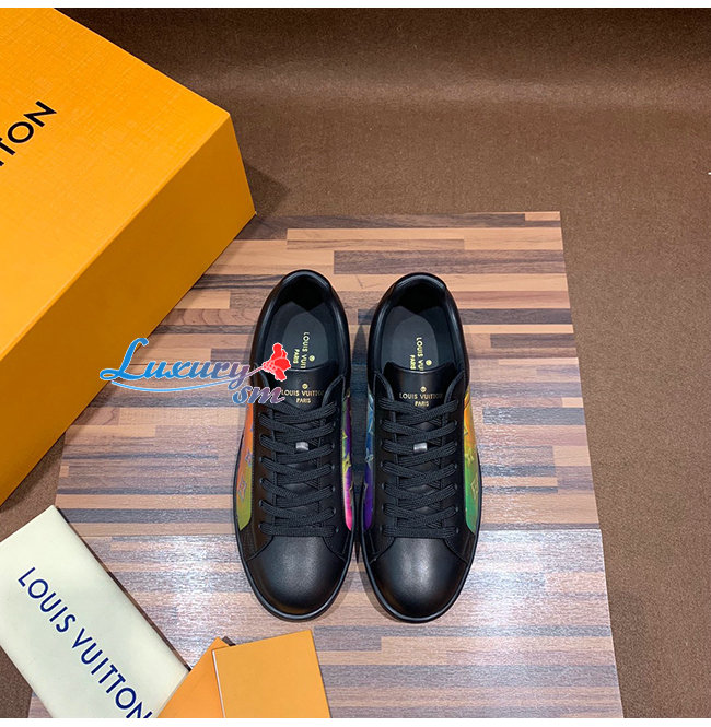 [스페셜오더]LOUIS VUITTON-1A5HC2 루이비통 블랙 송아지 가죽 멀티컬러 모노그램 디테일 룩셈부르크 스니커즈