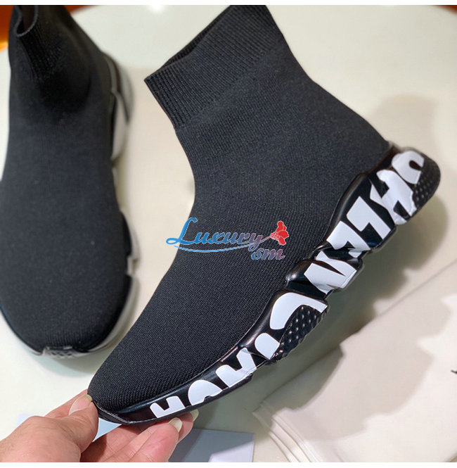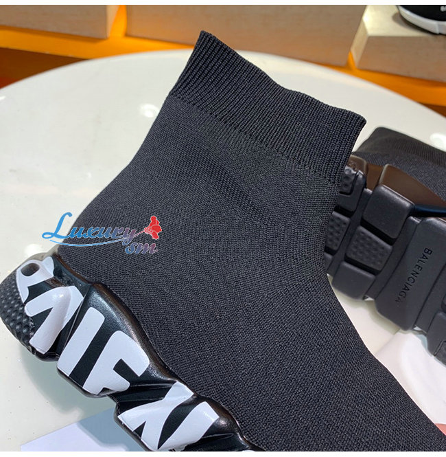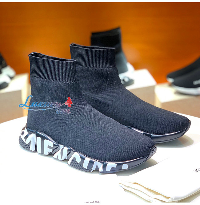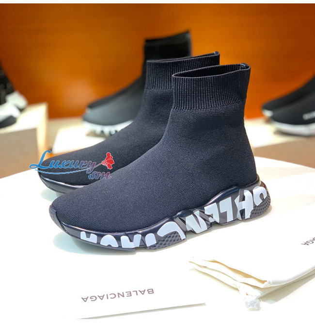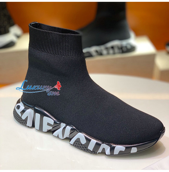 BALENCIAGA-605972 발렌시아가 블랙 니트 그래피티 로고 스피드 트레이너 남여공용