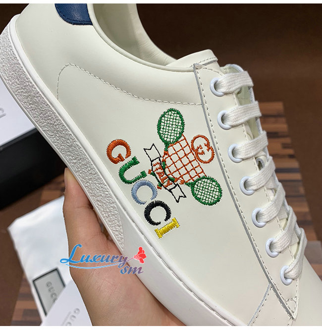 GUCCI-603696 9096 구찌 에이스 화이트 가죽 테니스 장식 스니커즈