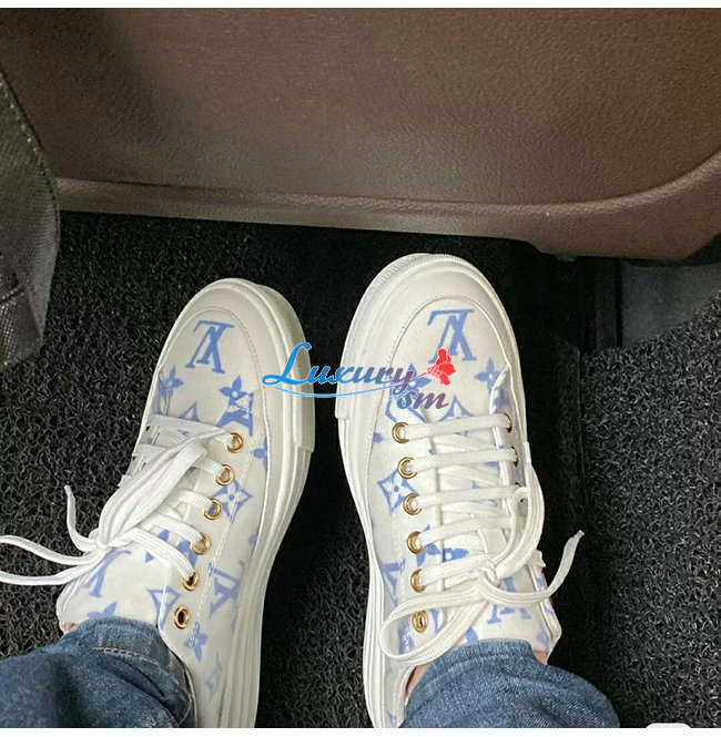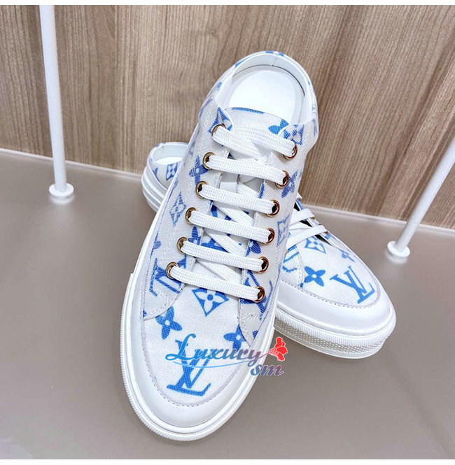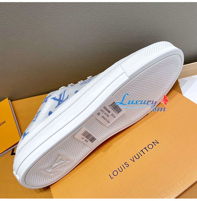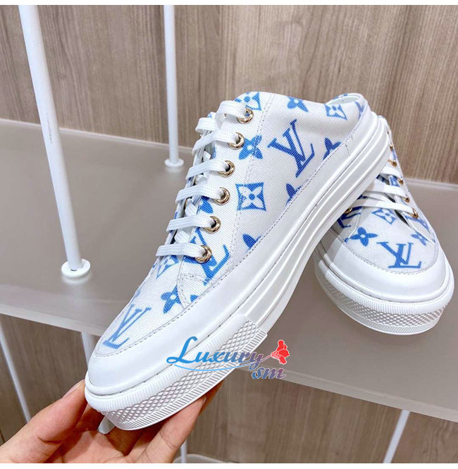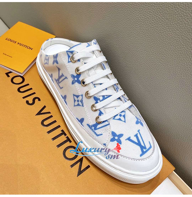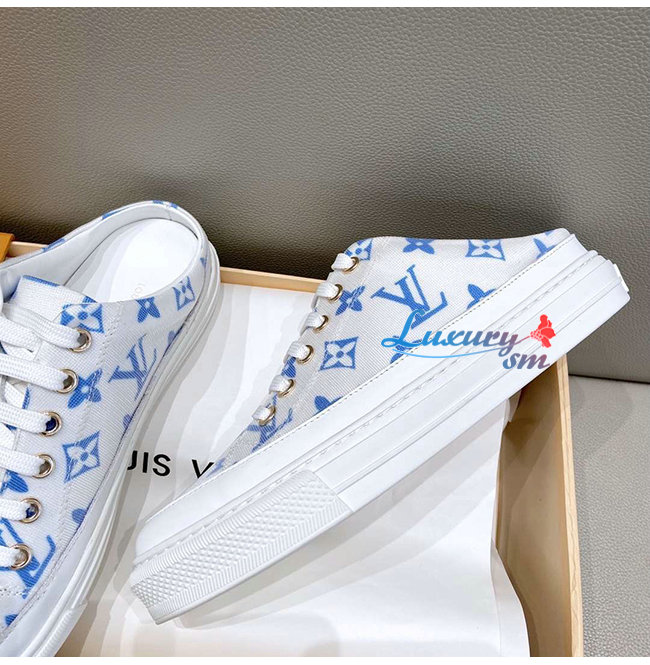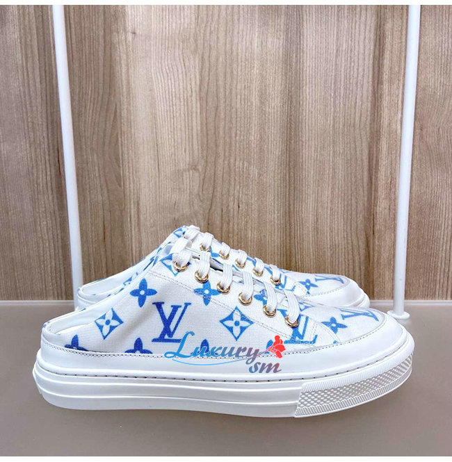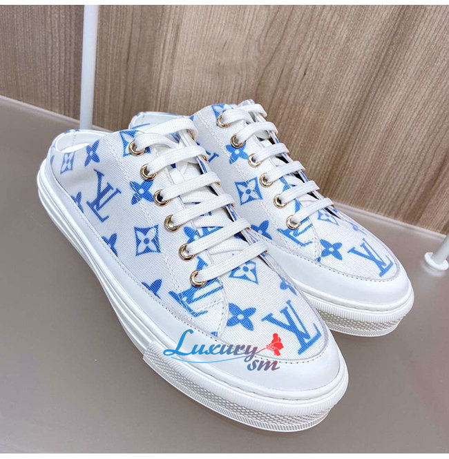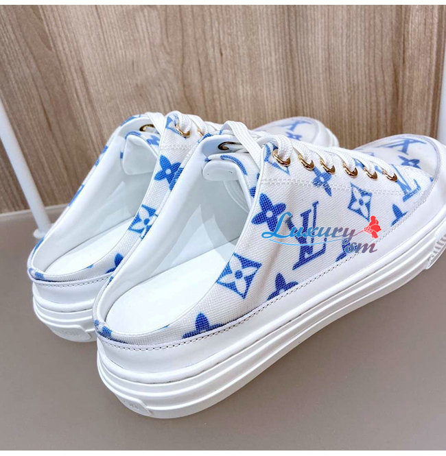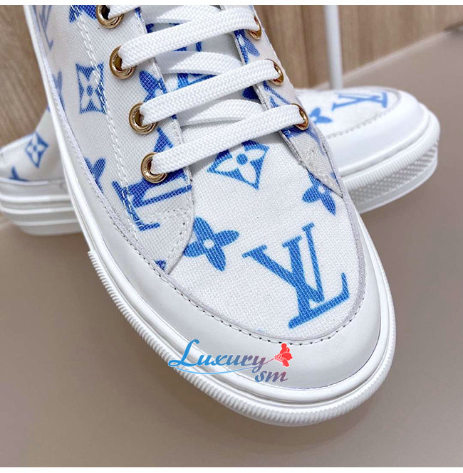 LOUIS VUITTON-1A65YN 루이비통 화이트/블루 모노그램 프린트 텍스타일 스텔라 오픈 백 스니커즈