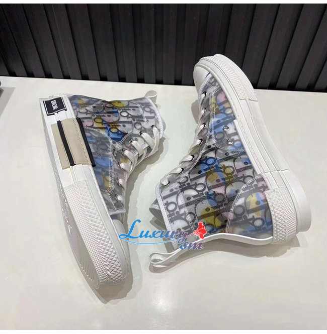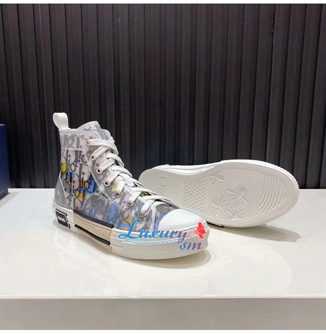 DIOR-3SH118 디올 DIOR & 알렉스 폭스턴 프린트 DIOR OBLIQUE B23 하이탑 스니커즈 남여공용