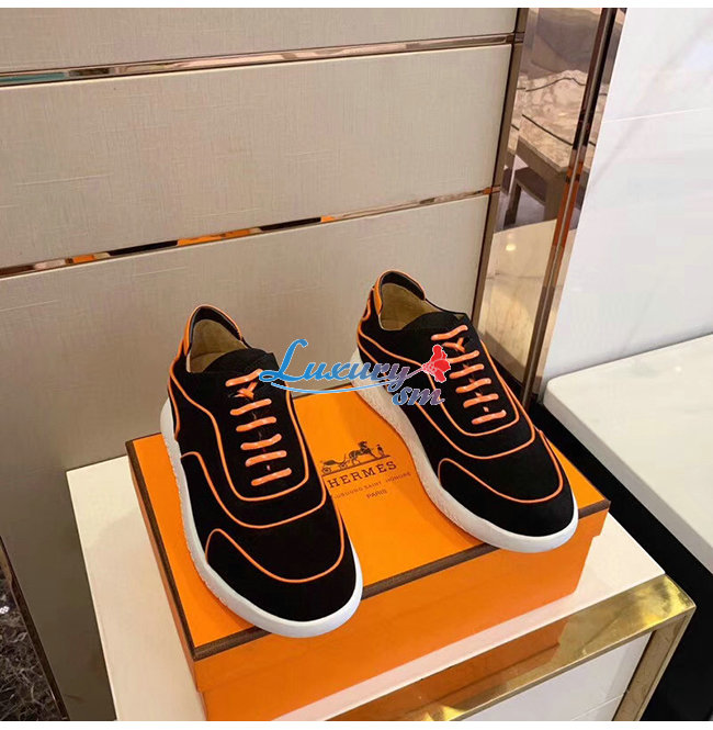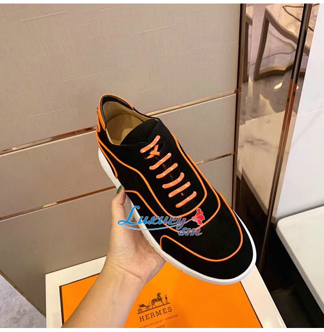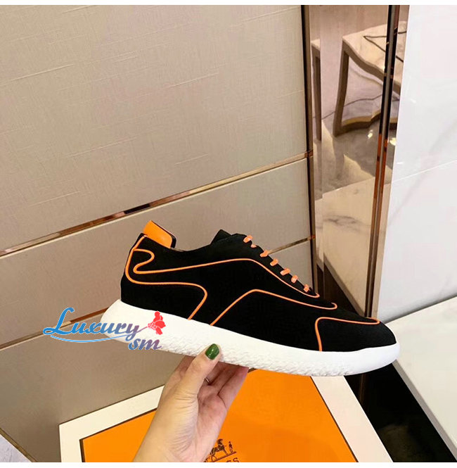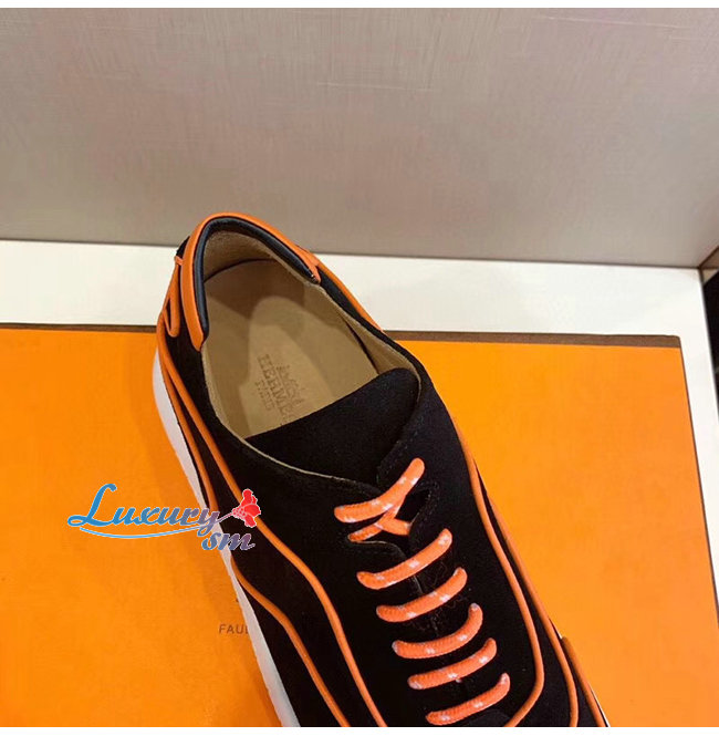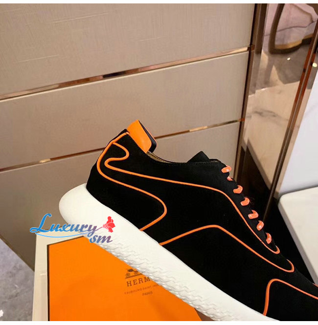 HERMES-H192509 에르메스 블랙/오렌지 고트스킨 볼테 스니커즈