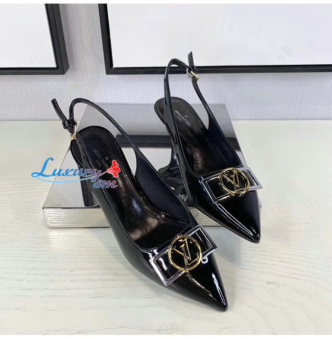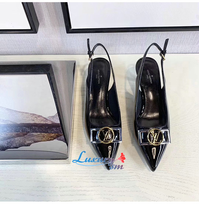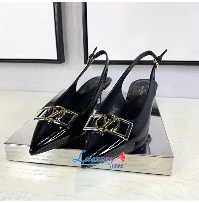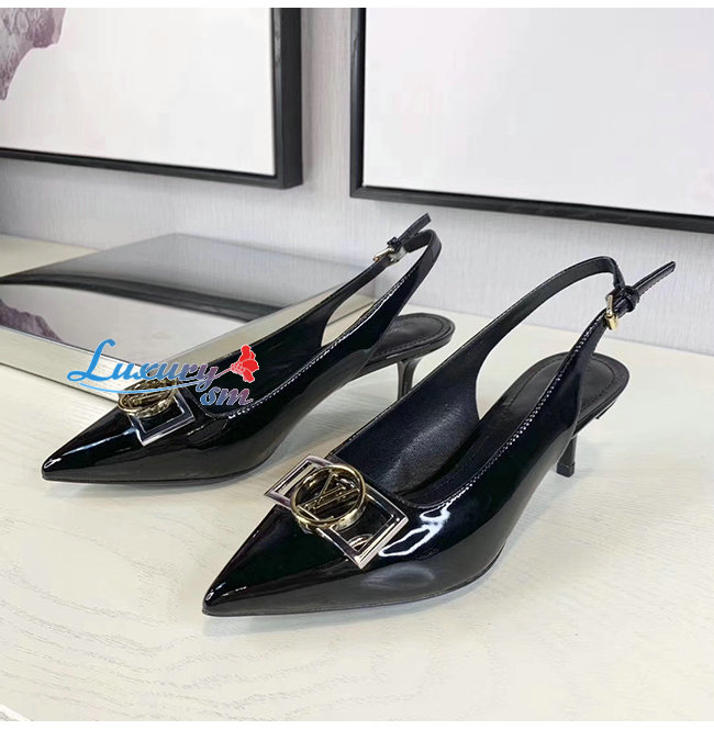 LOUIS VUITTON-1A66C0 루이비통 블랙 페이턴트 소가죽 인사이더 슬링백 펌프스