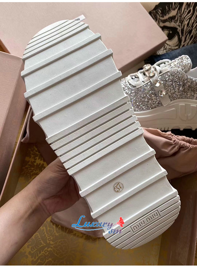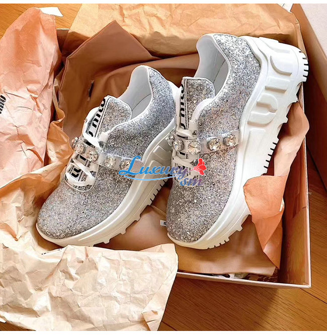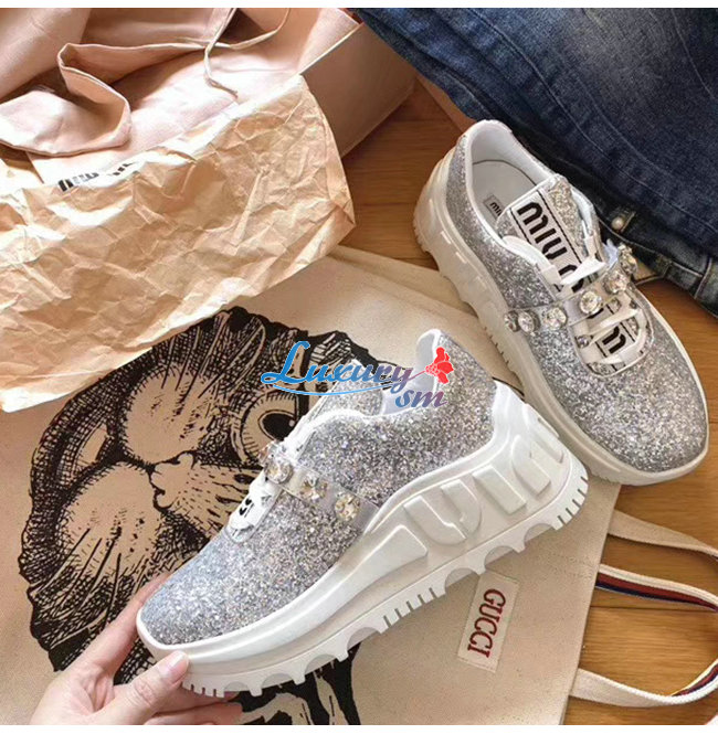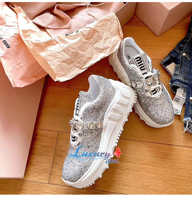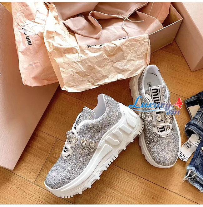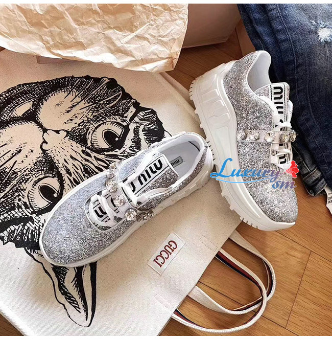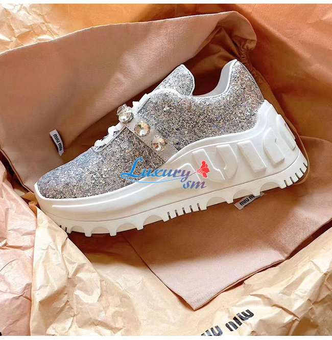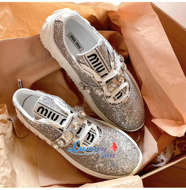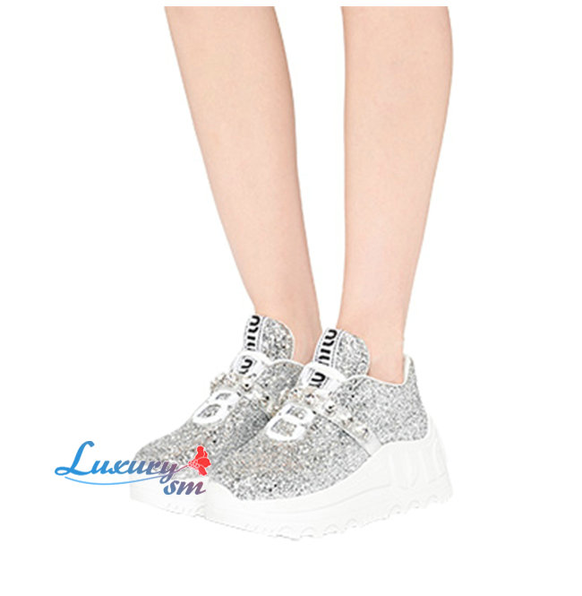 MIUMIU-5E761C 미우미우 실버 글리터 패브릭 스니커즈