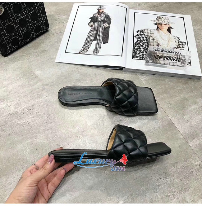 BOTTEGA VENETA-609105 보테가 베네타 네로 양가죽 패딩샌들
