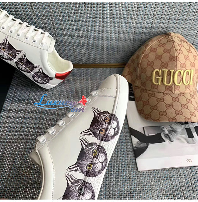 GUCCI-577147 9090 구찌 에이스 화이트 가죽 미스틱 캣 스니커즈 남여공용