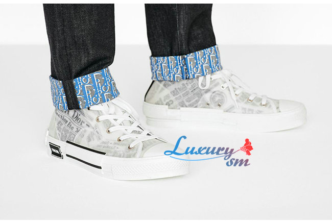 DIOR-3SH118 디올 화이트 DIOR & DANIEL ARSHAM 뉴스페이퍼 프린트 B23 하이탑 스니커즈