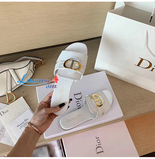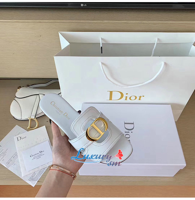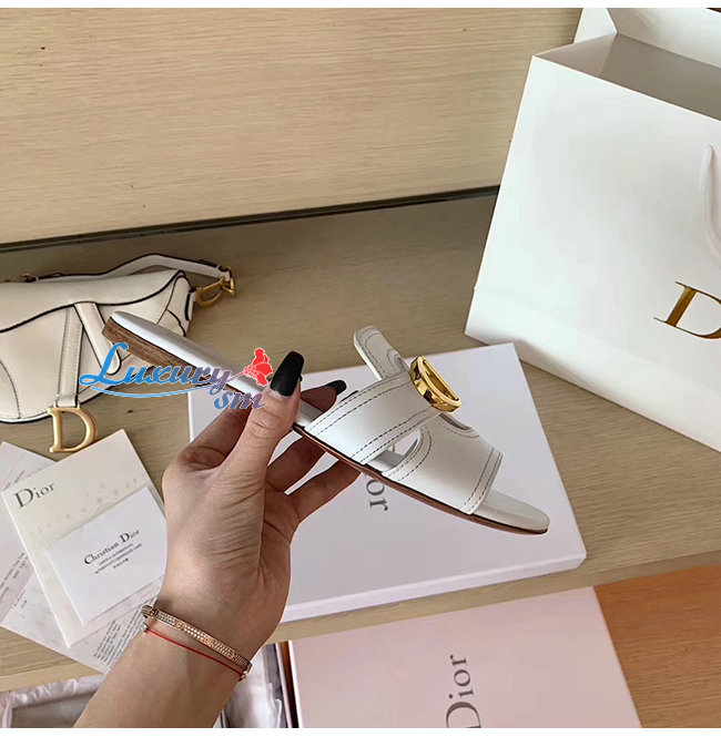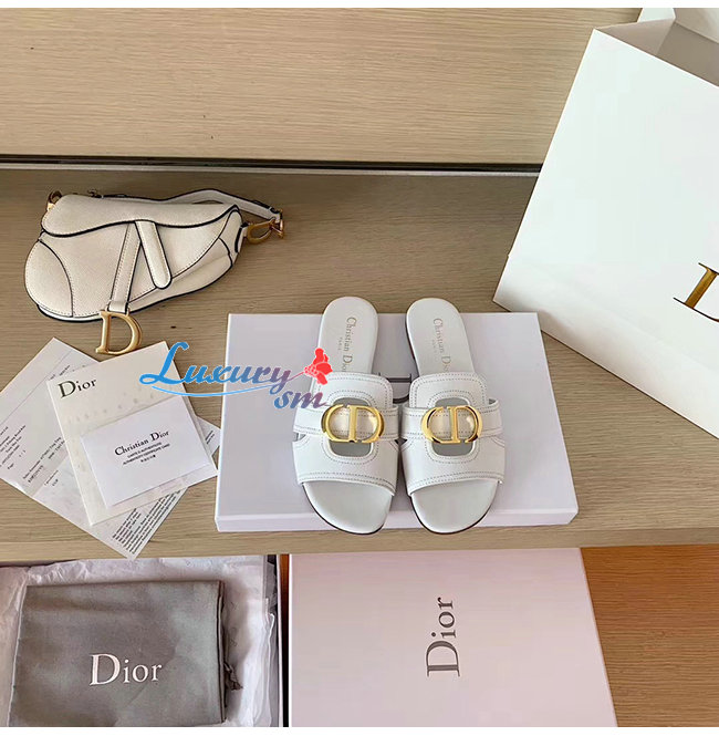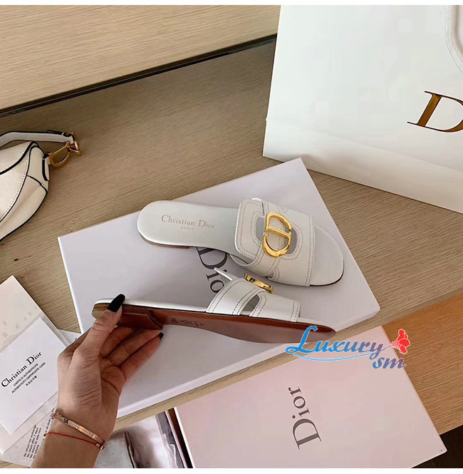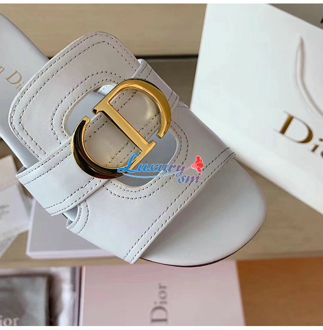 DIOR-KCQ266 디올 화이트 송아지 가죽 30 MONTAIGNE 뮬