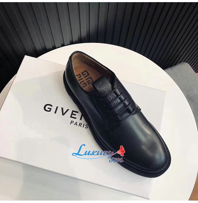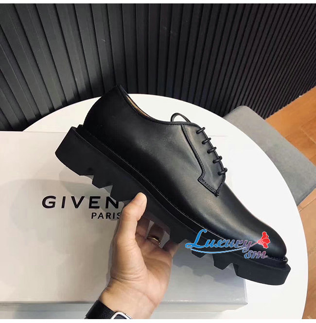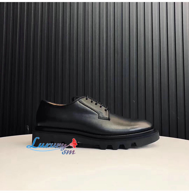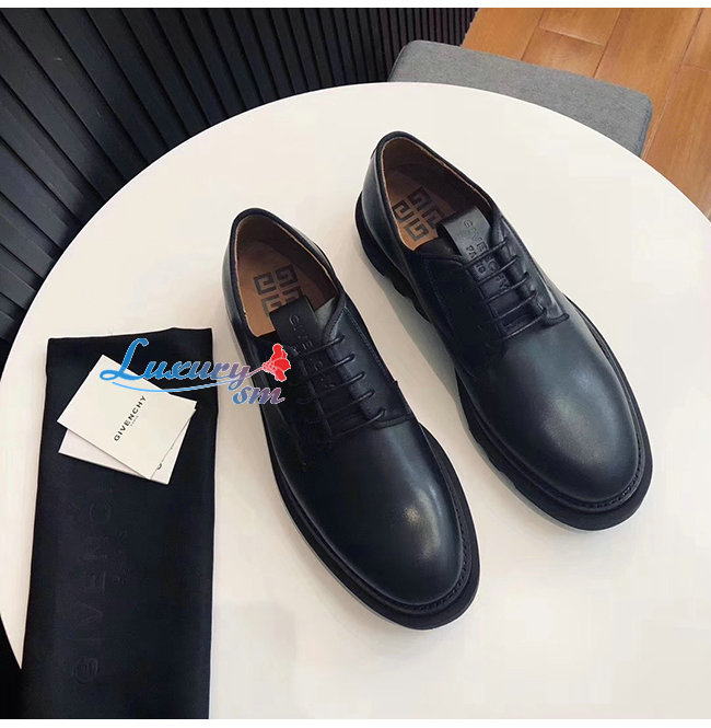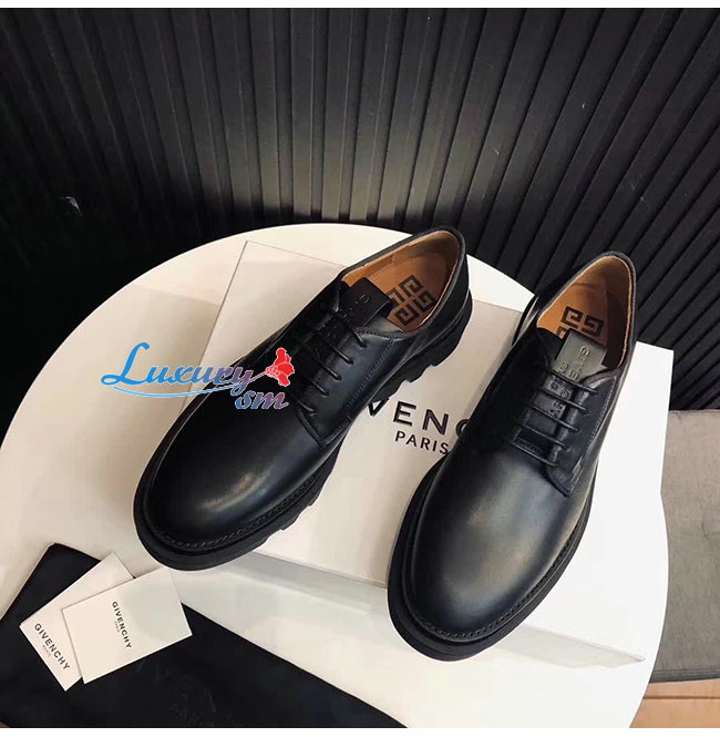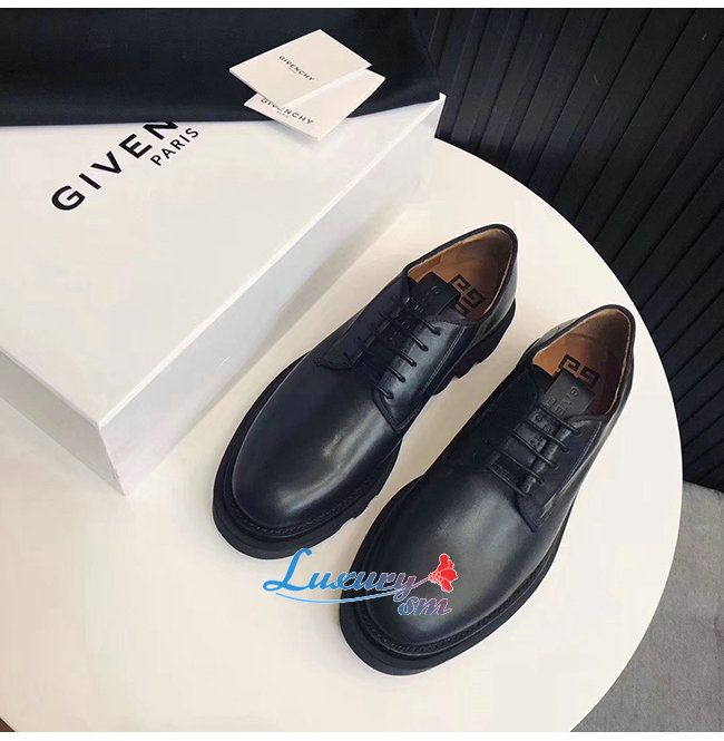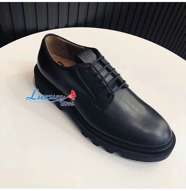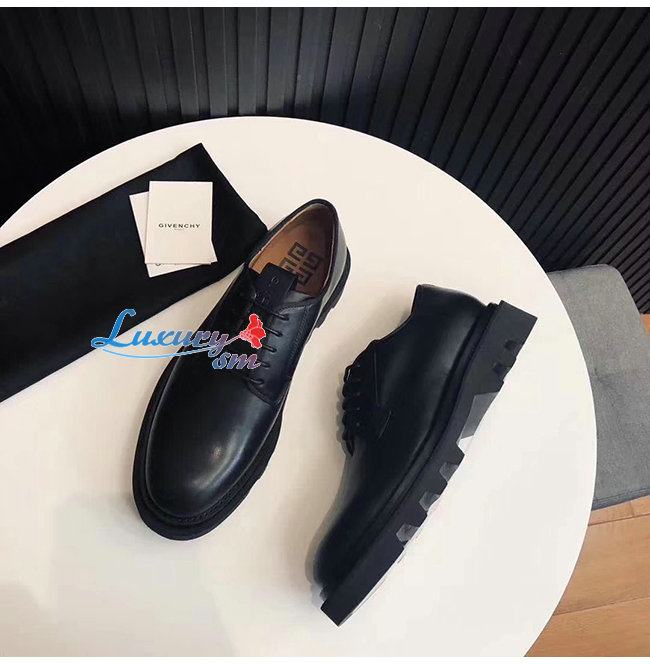 부드러운 블랙가죽 소재의 라운드 토 컴뱃 더비슈즈