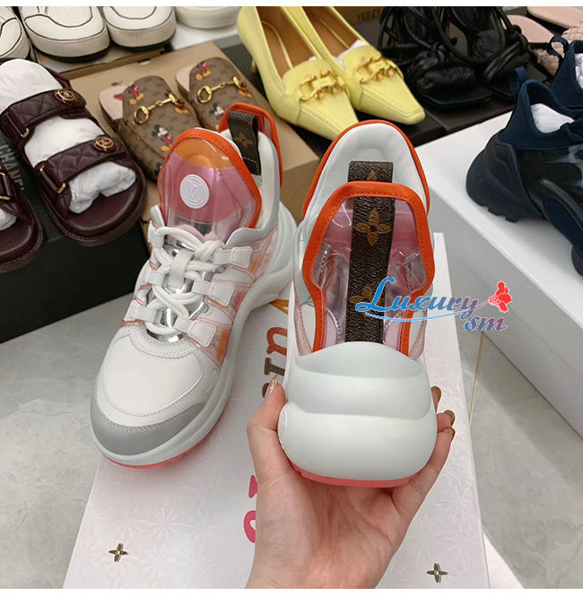 LOUIS VUITTON-1A65RA 루이비통 핑크/오랑주 소가죽 테크니컬 패브릭 LV 아치라이트 스니커즈