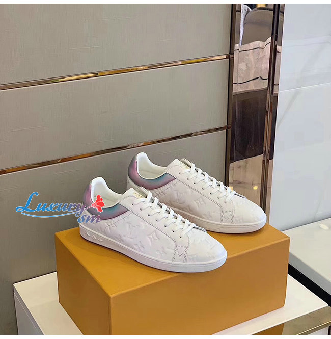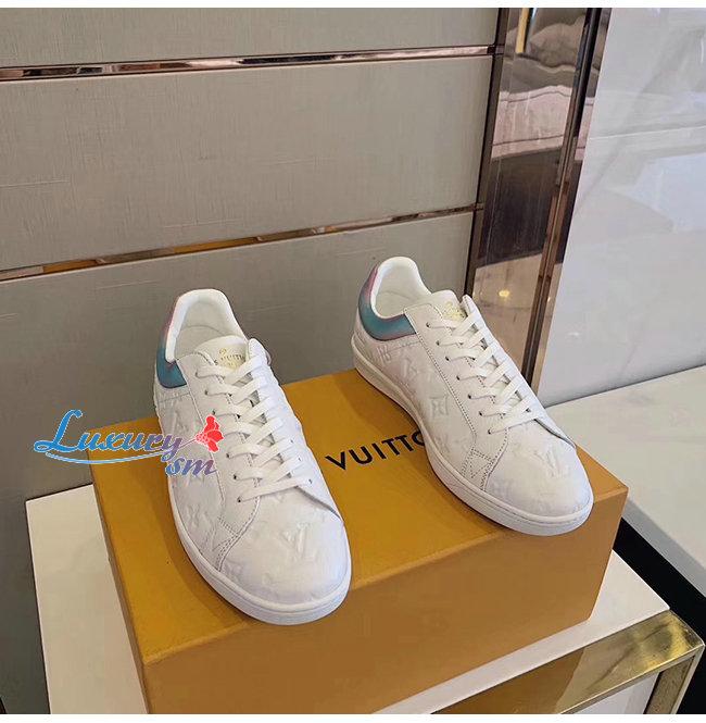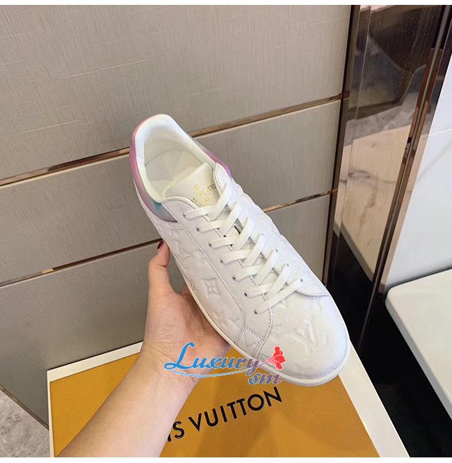 LOUIS VUITTON-1A7S7P 루이비통 화이트 모노그램 엠보스드 그레인 송아지 가죽 룩셈부르크 스니커즈