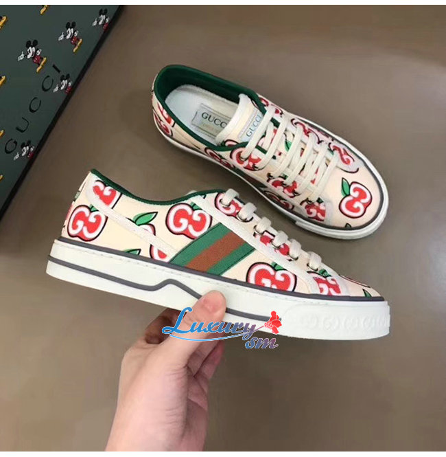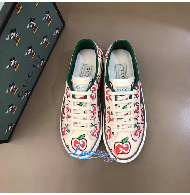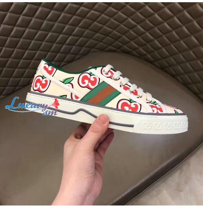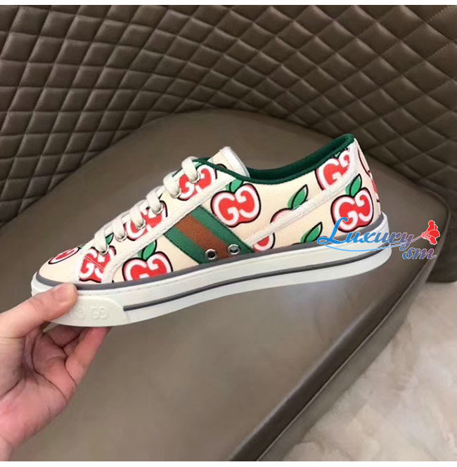 GUCCI-606110 9270 구찌 GG 애플 프린트 아이보리 캔버스 구찌 테니스 1977 스니커즈