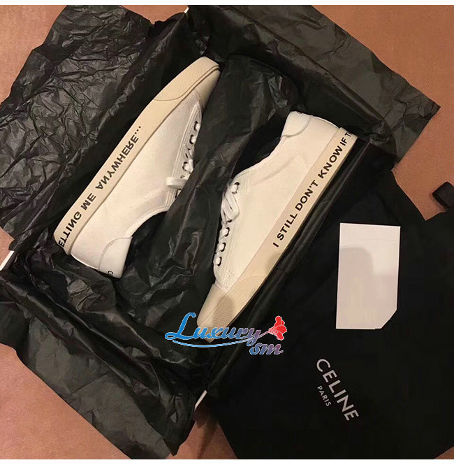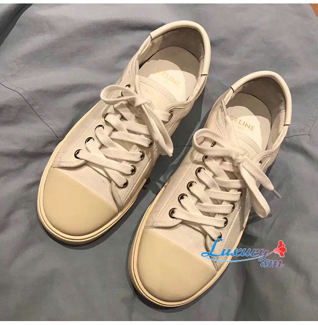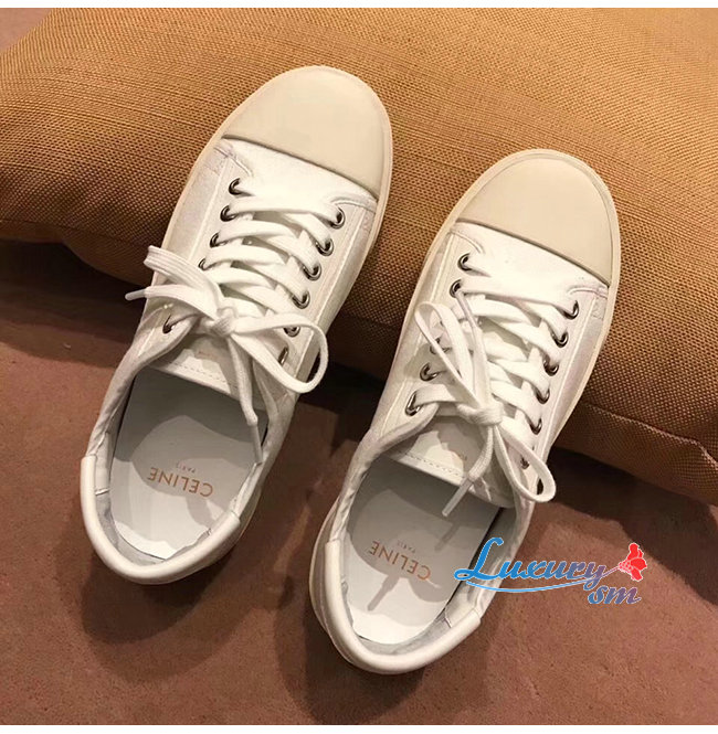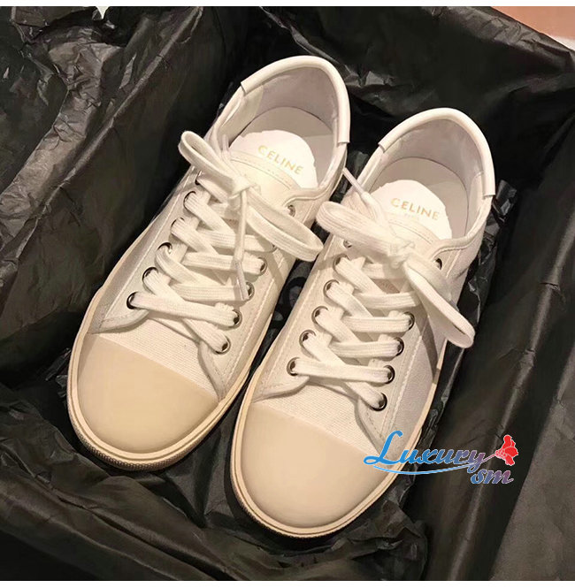 CELINE-336142 셀린느 화이트 코튼 BLANK 로우 레이스업 스니커즈