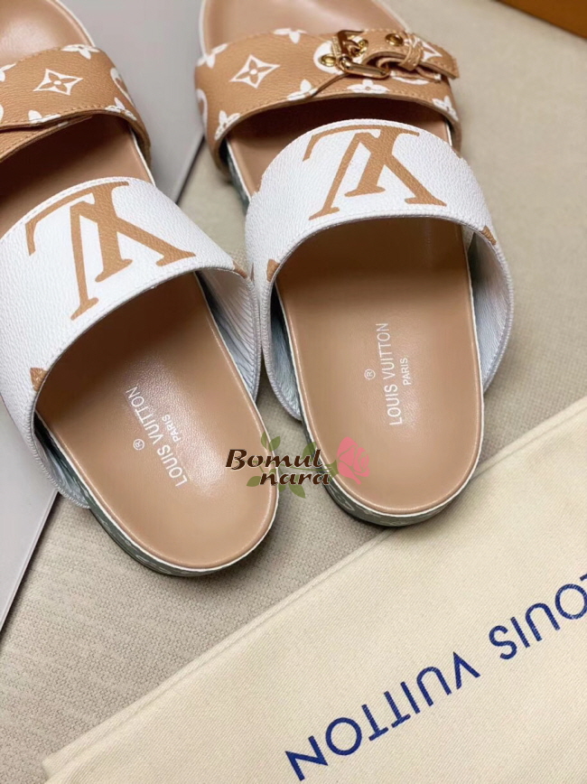 LOUIS VUITTON-1A57JX 루이비통 화이트/모카 브라운 모노그램 봄 디아 플랫 뮬 여성 슬리퍼