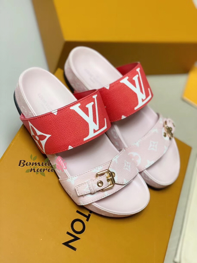 LOUIS VUITTON-1A57KC 루이비통 핑크/레드 모노그램 봄 디아 플랫 뮬 여성 슬리퍼