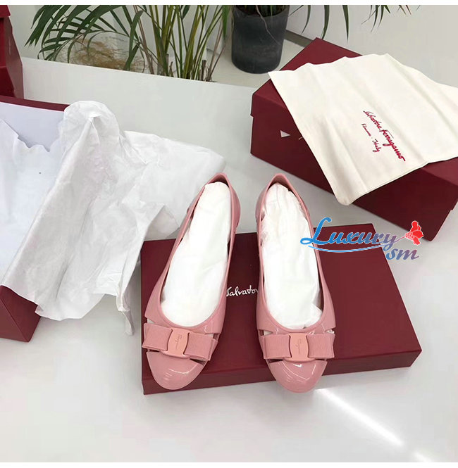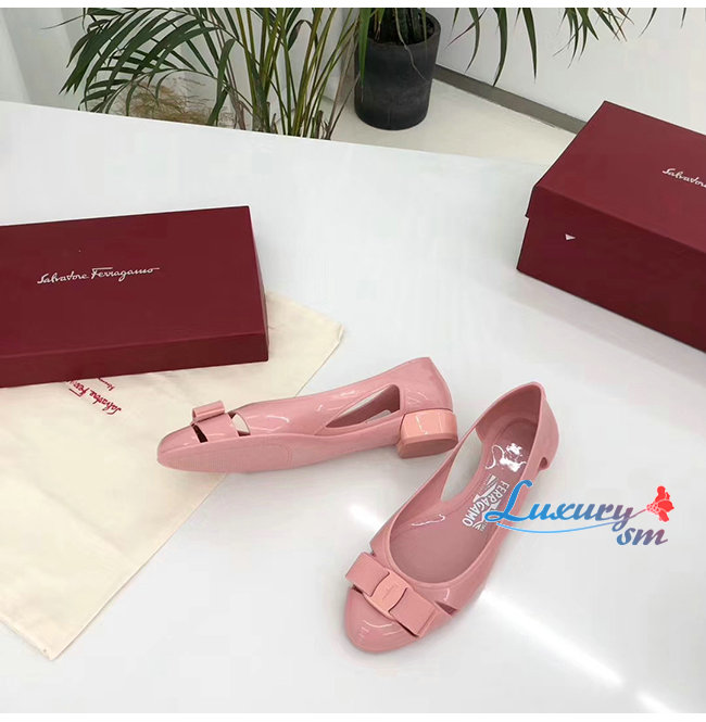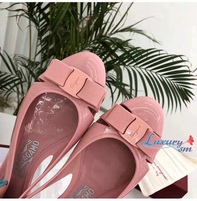 Ferragamo-035656 페라가모 핑크 PVC 바라 보우 슬립