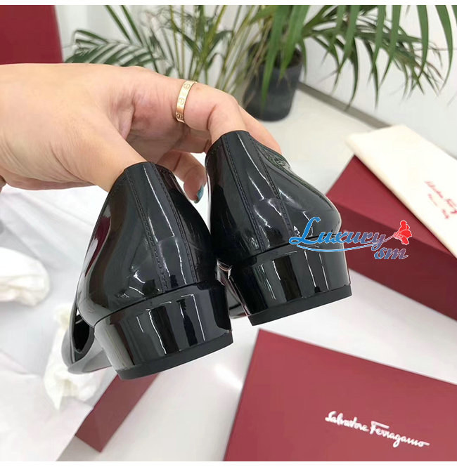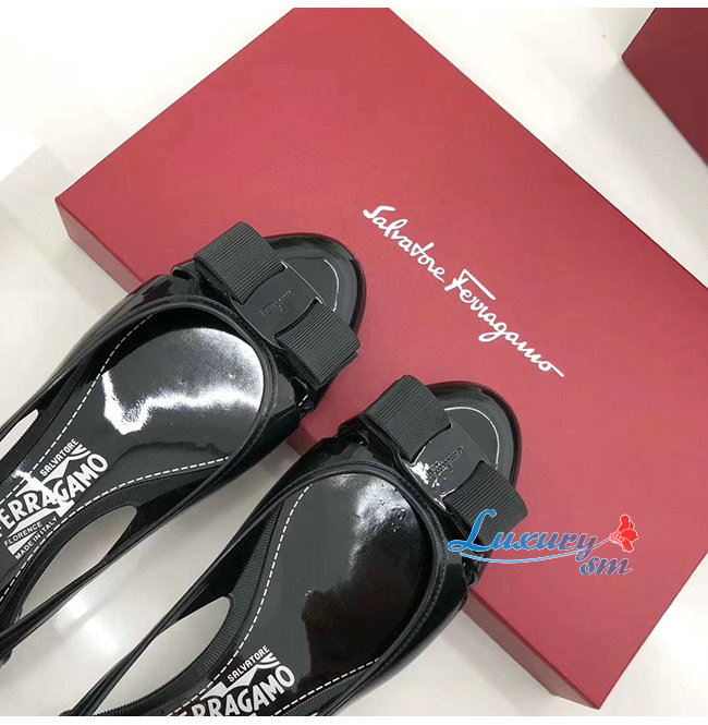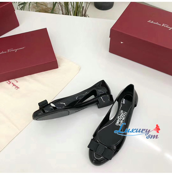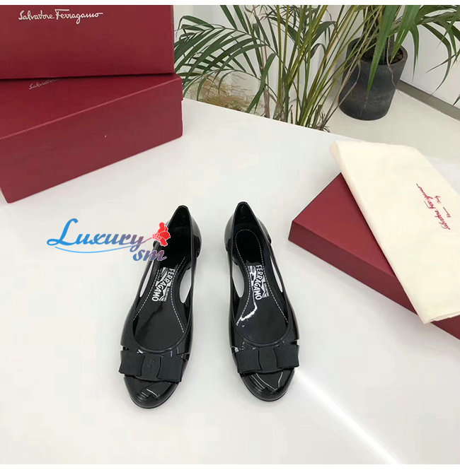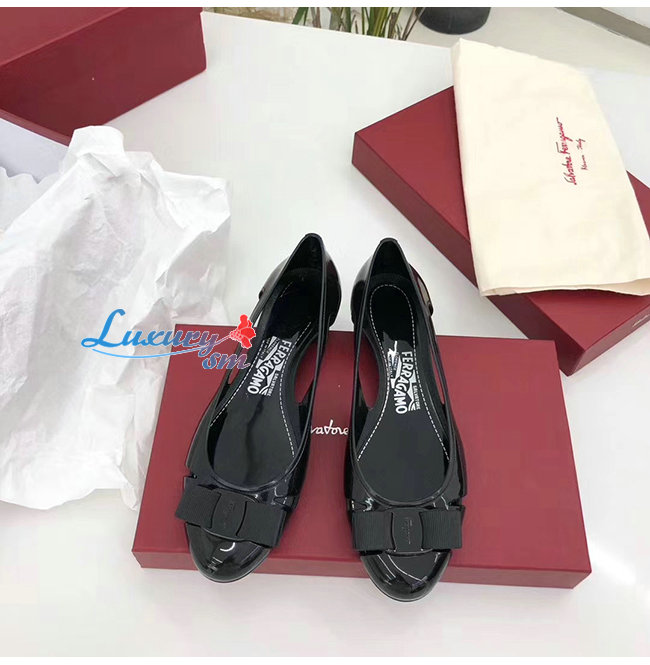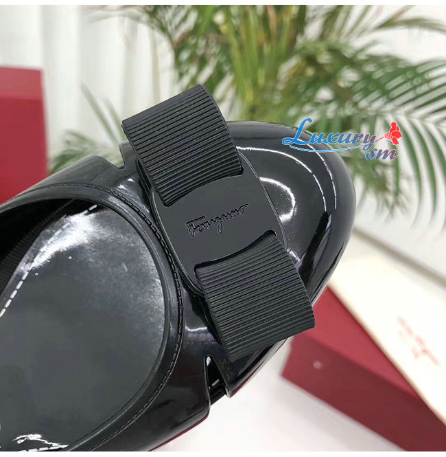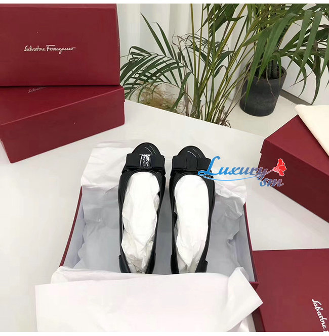 Ferragamo-035656 페라가모 블랙 PVC 바라 보우 슬립