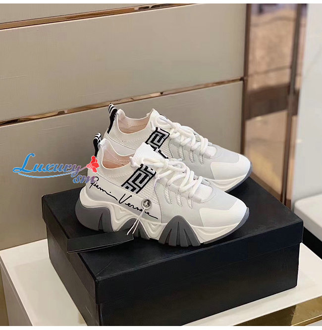 VERSACE-DSU8007 베르사체 화이트 니트 송아지 가죽 트레이너 스니커즈 남여공용
