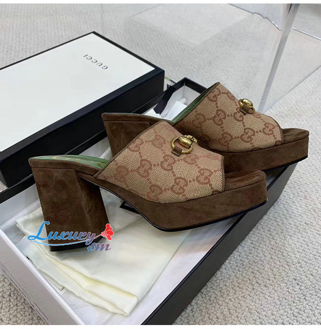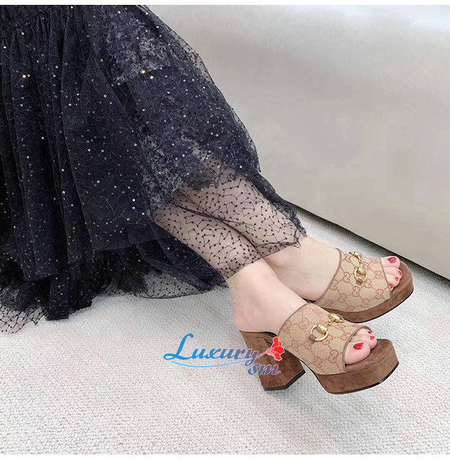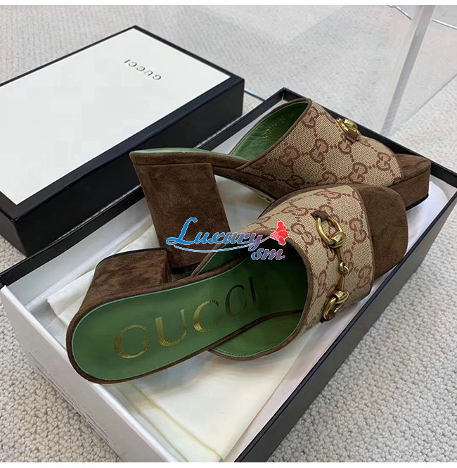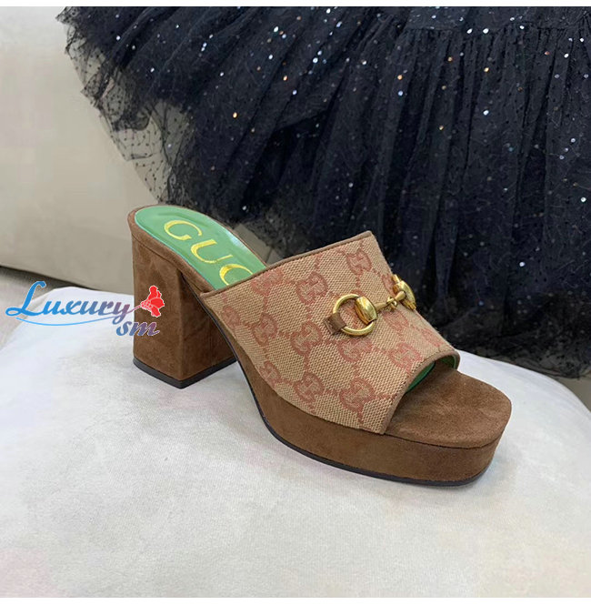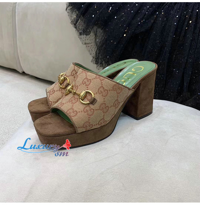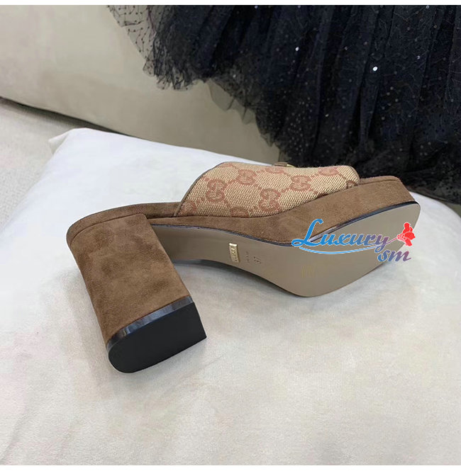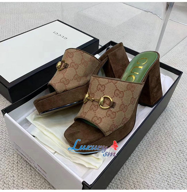 GUCCI-609344 8375 구찌 GG 미드힐 플랫폼 슬라이드 샌들