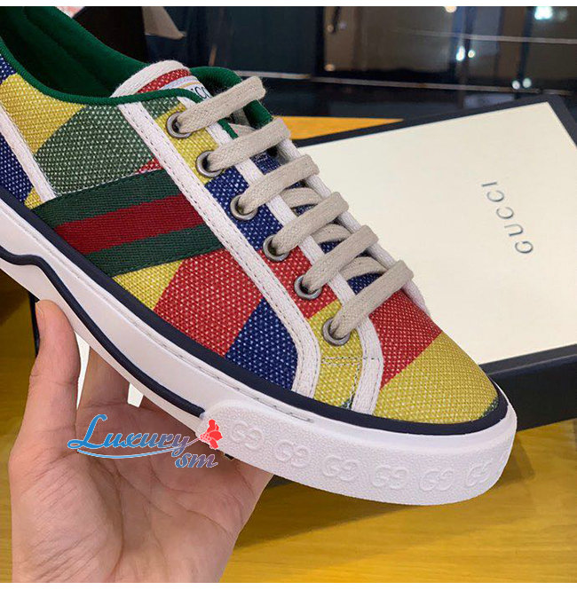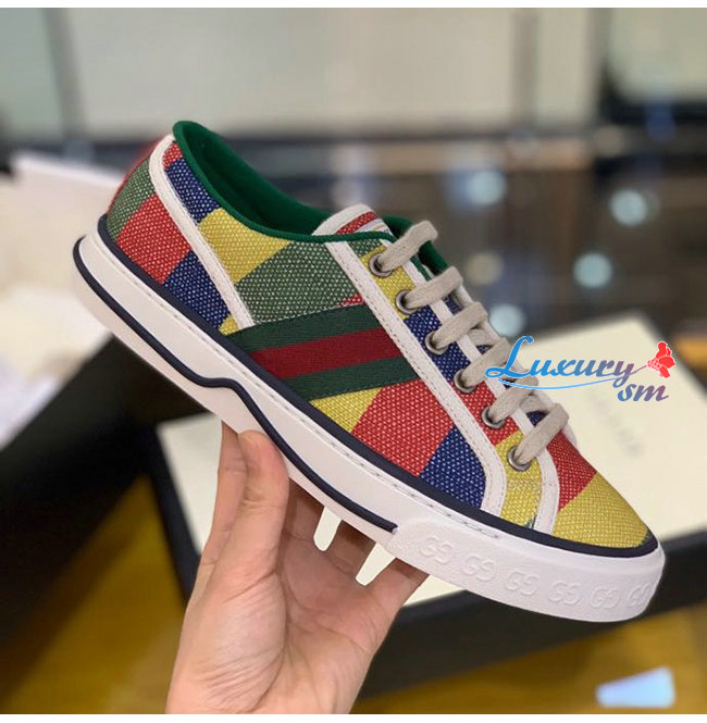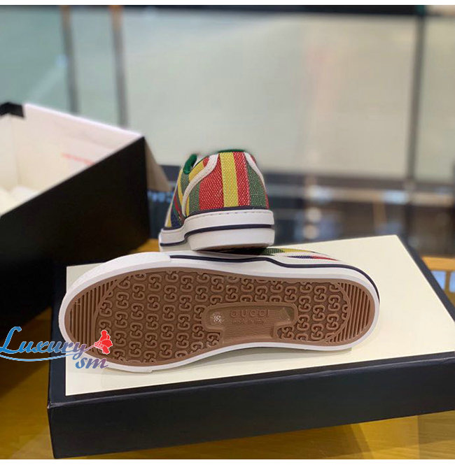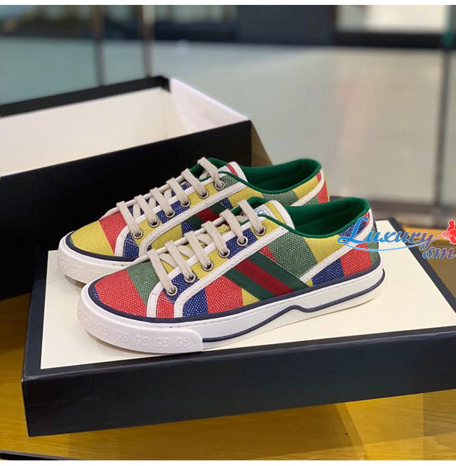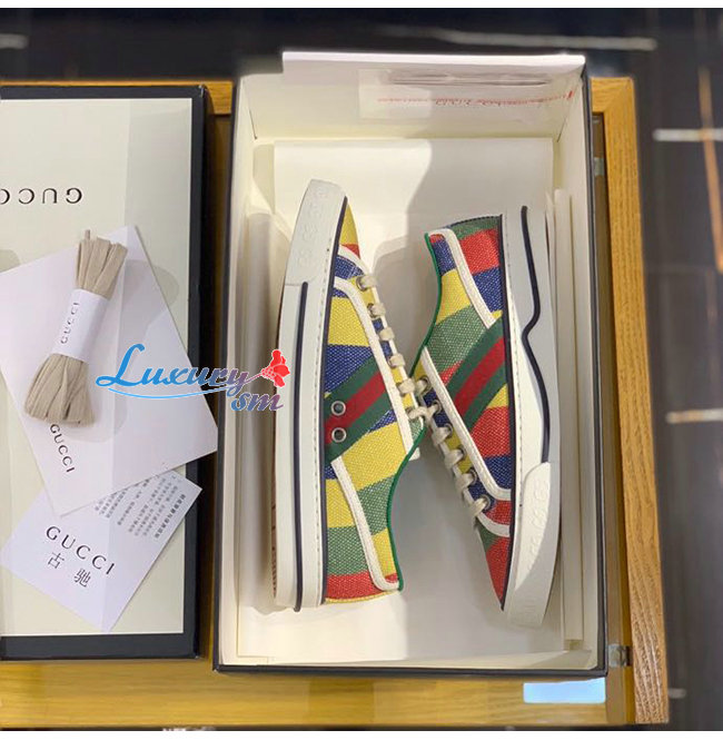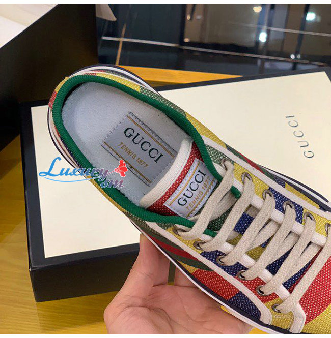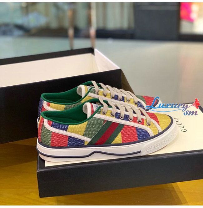GUCCI-606111 8465 구찌 에이스 멀티컬러 스트라이프 프린트 캔버스 구찌 테니스 1977 스니커즈 남여공용