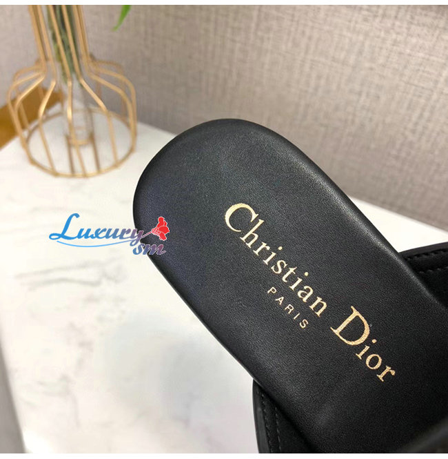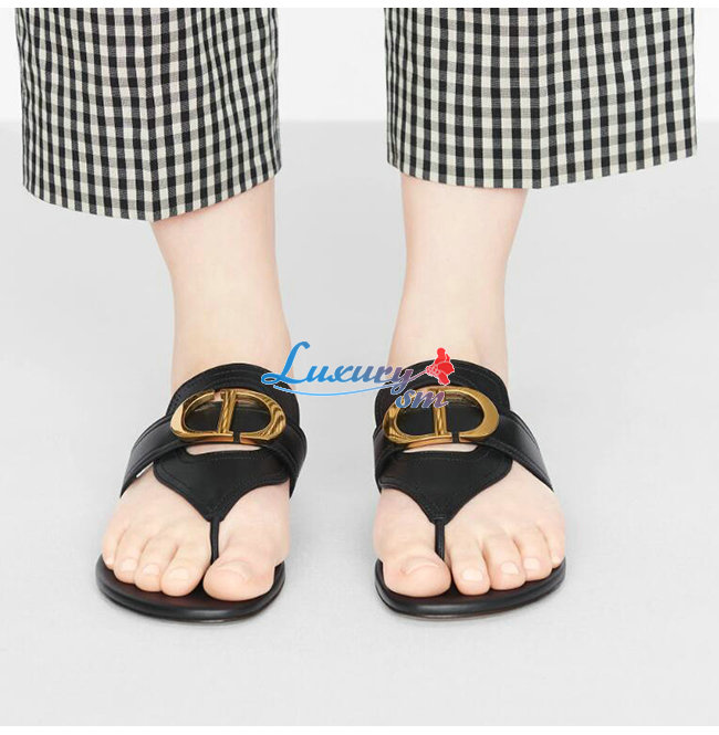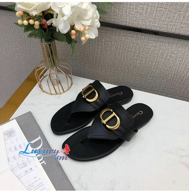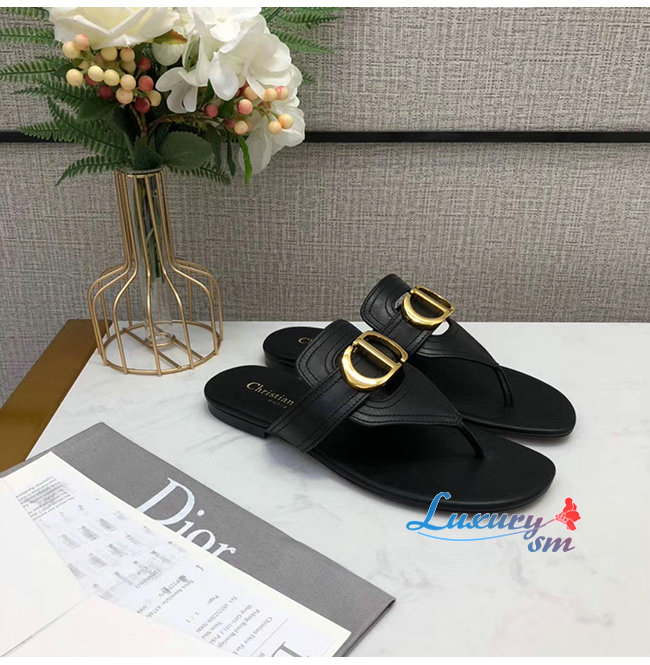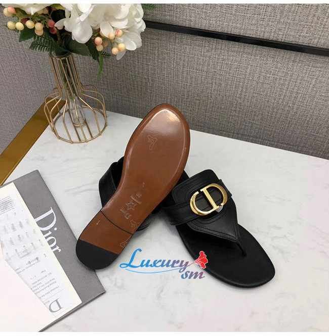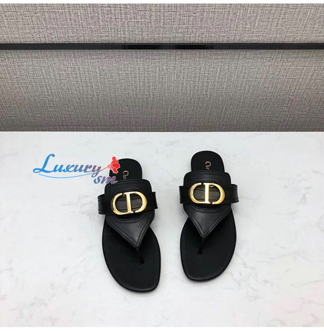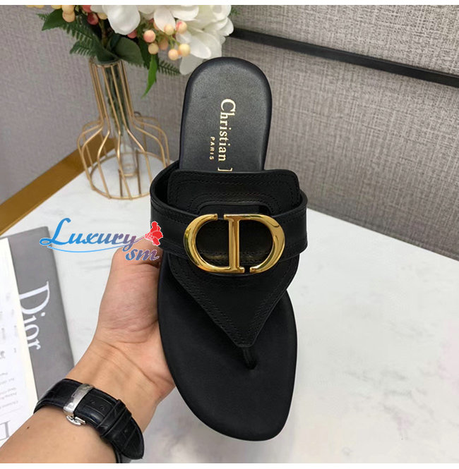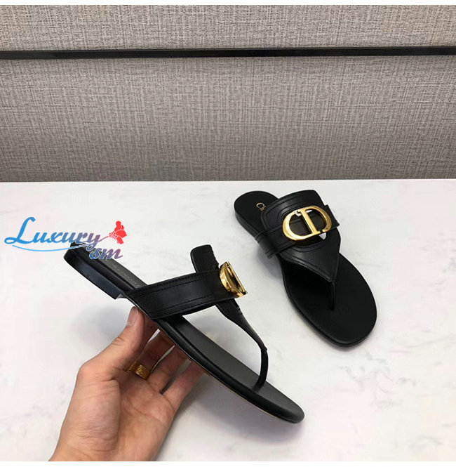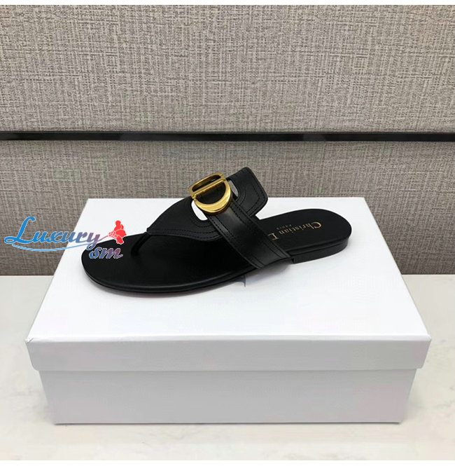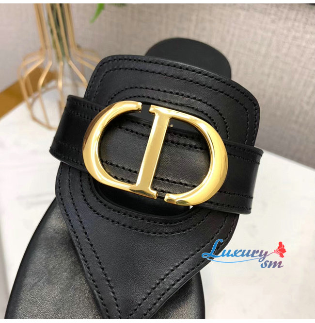 DIOR-KCQ386 디올 블랙 송아지 가죽 30 MONTAIGNE 플랫 플립플랍 여성용