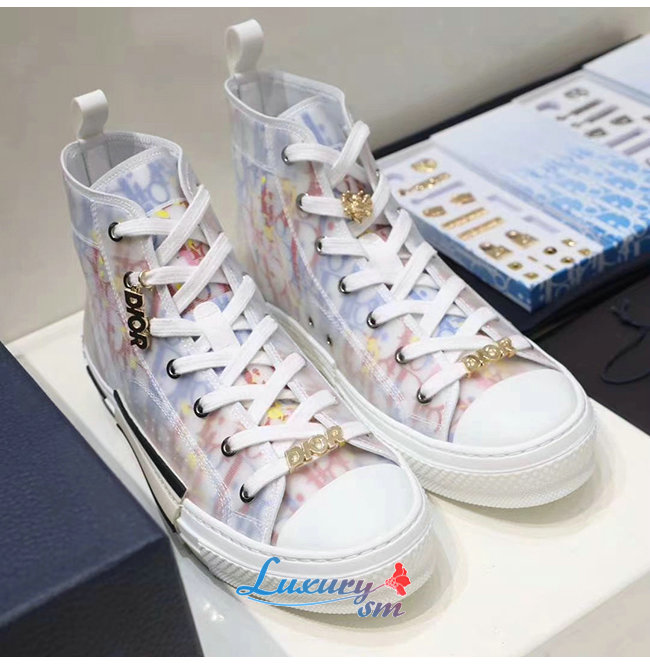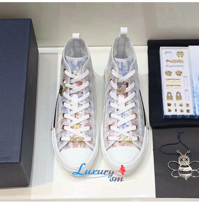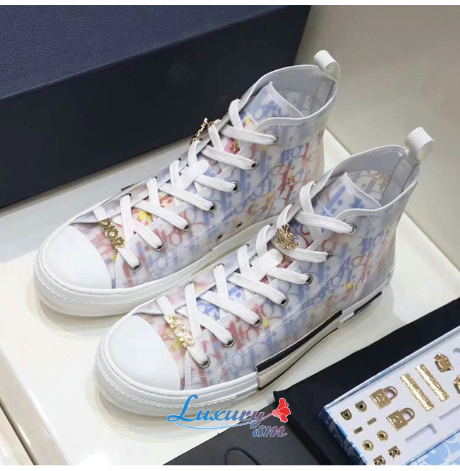 DIOR-3SH118 디올 DIOR & 알렉스 폭스턴 프린트 DIOR OBLIQUE B23 하이탑 스니커즈 남여공용