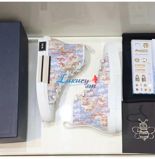 DIOR-3SH118 디올 멀티컽러 Dior Oblique 캔버스 B23 하이탑 스니커즈 남여공용