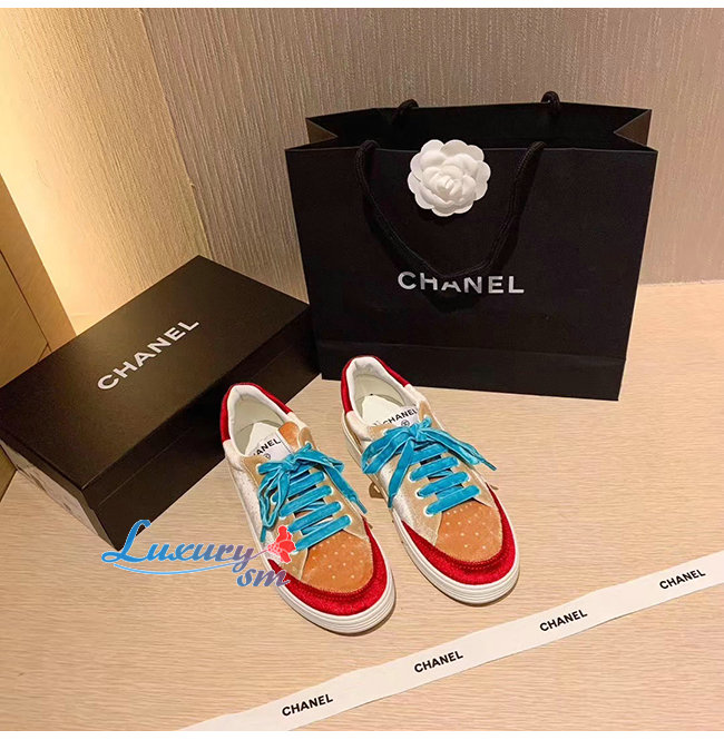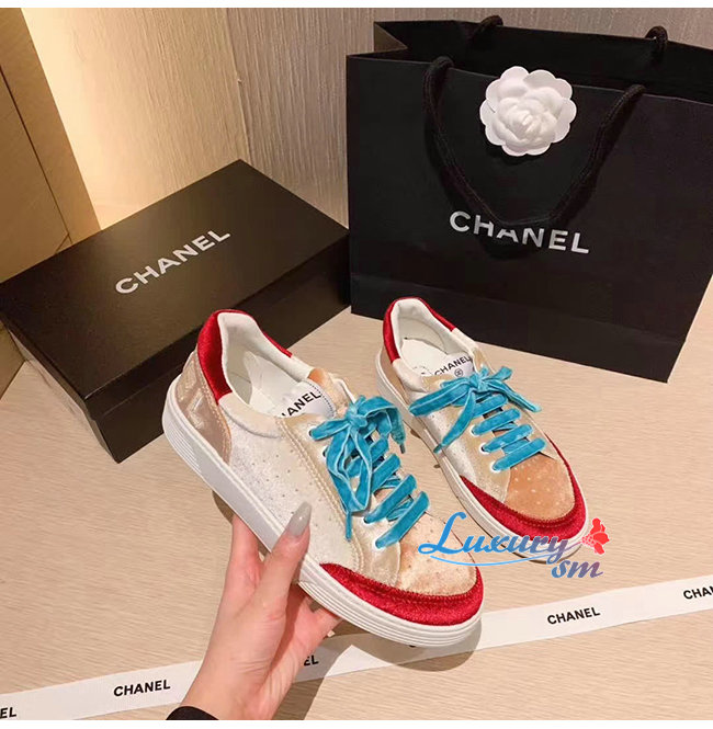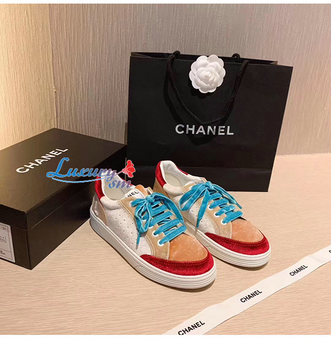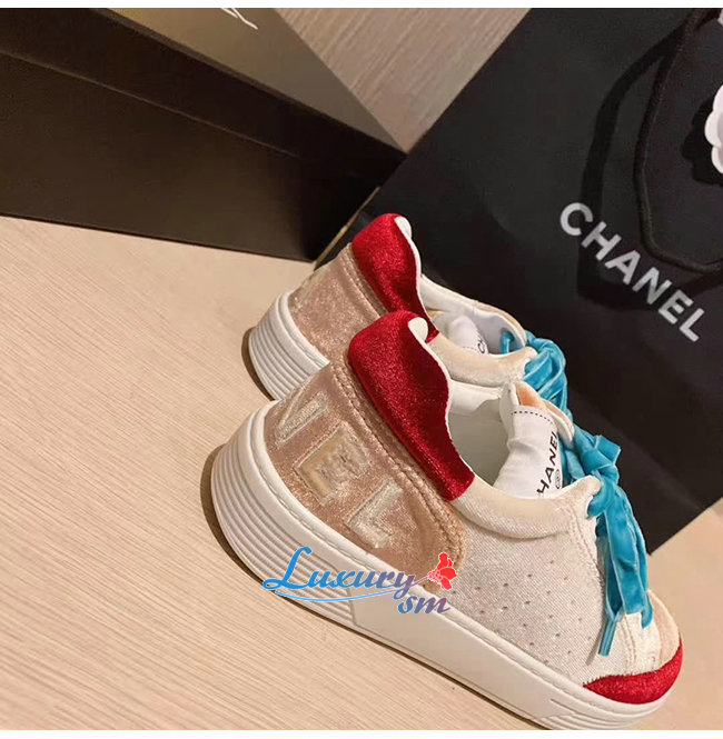 CHANEL-G36295 샤넬 화이트/베이지/버건디 벨벳 스니커즈