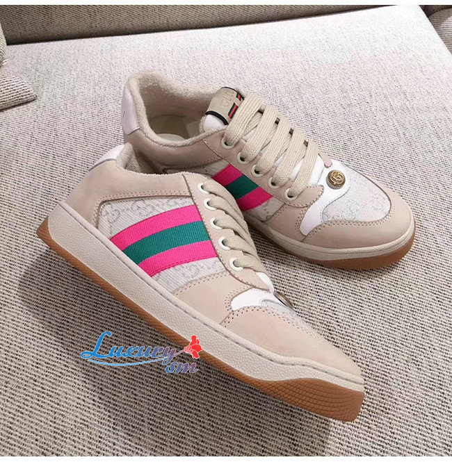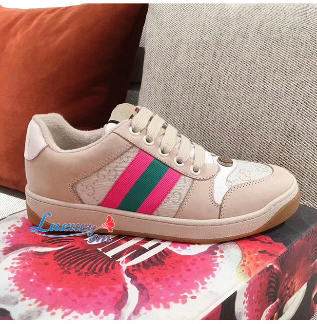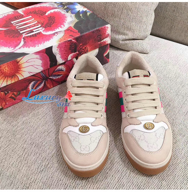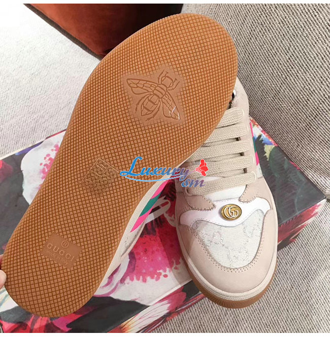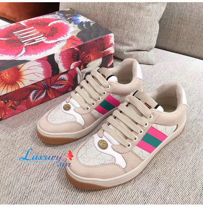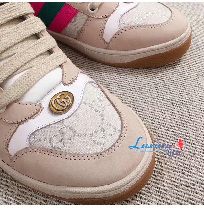 GUCCI-577684 9150 구찌 스크리너 크림 가죽 GG 라메 웹 스니커즈