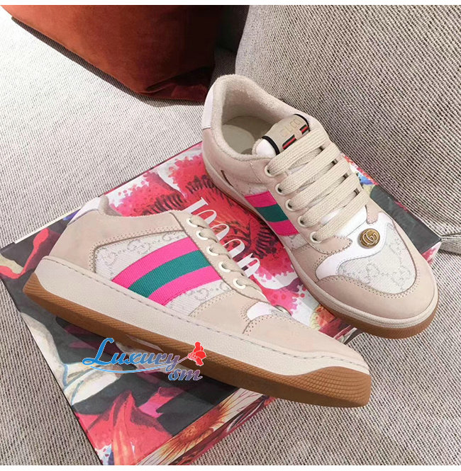 GUCCI-546163 9582 구찌 스크리너 화이트 천공 가죽 디스트로이드 효과 스니커즈